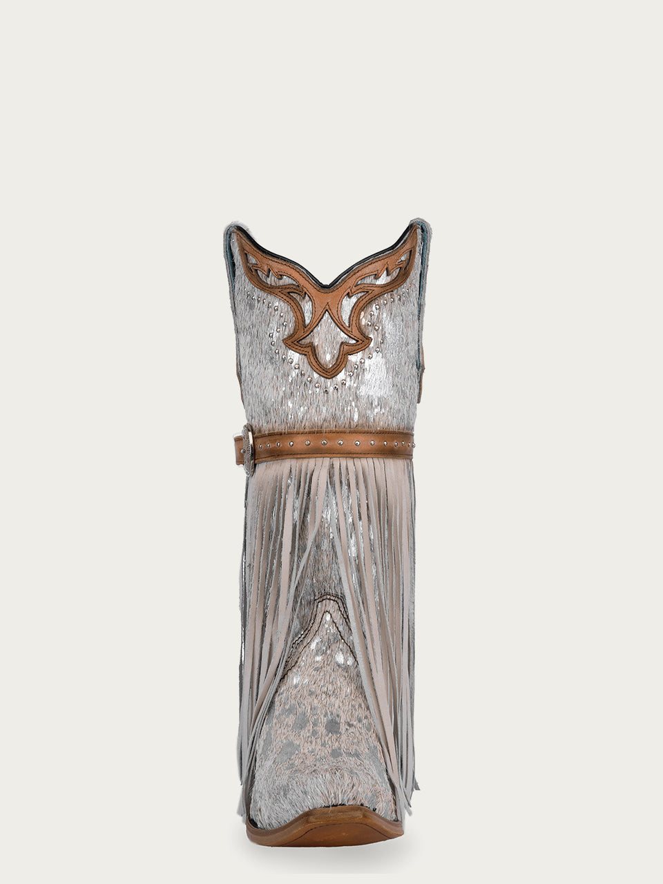 C4081 - WOMEN'S LAMB FRINGE, HARNESS AND STUDS SNIP TOE WHITE FUR COWBOY BOOT