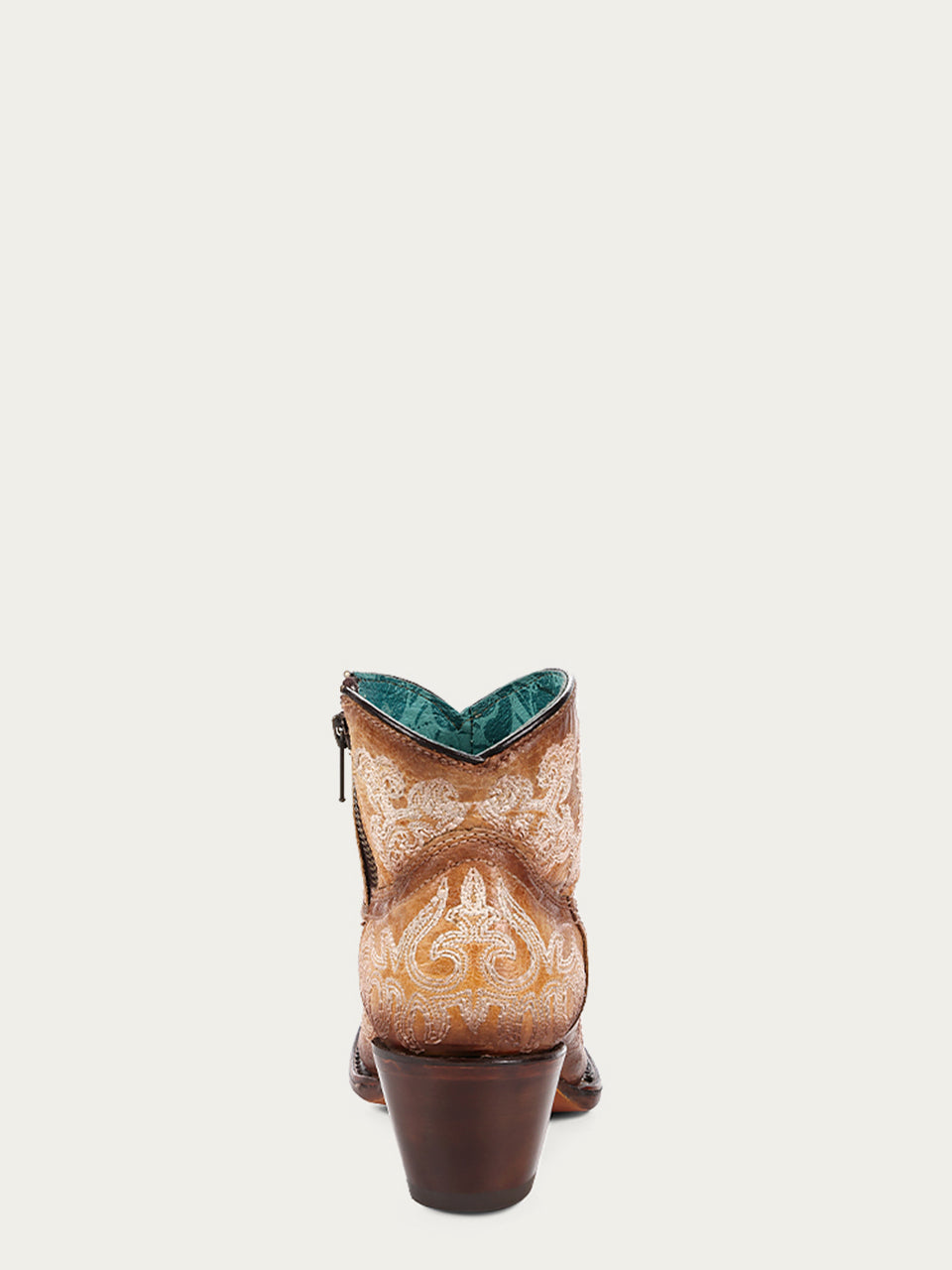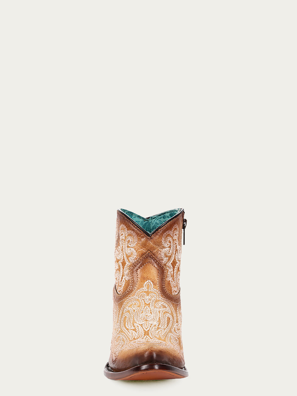 A4581 - WOMEN'S LUMINESCENT EMBROIDERY STRAW BLUE J-TOE ANKLE BOOT WITH ZIPPER