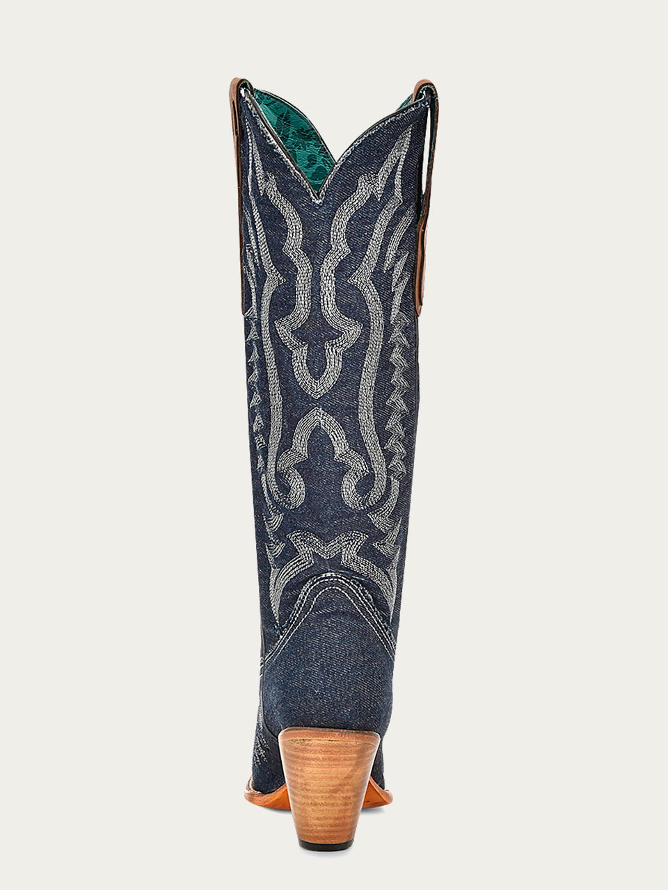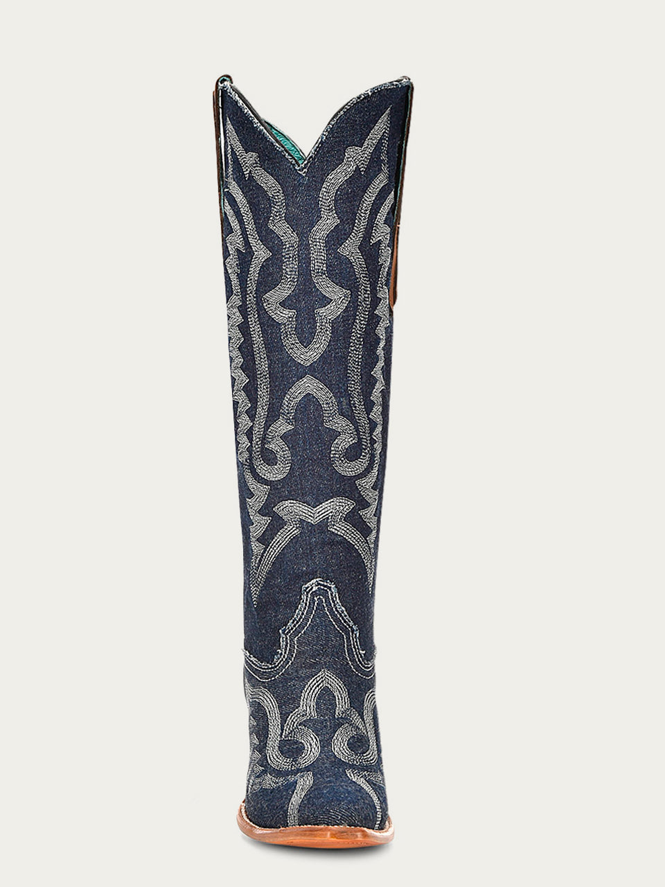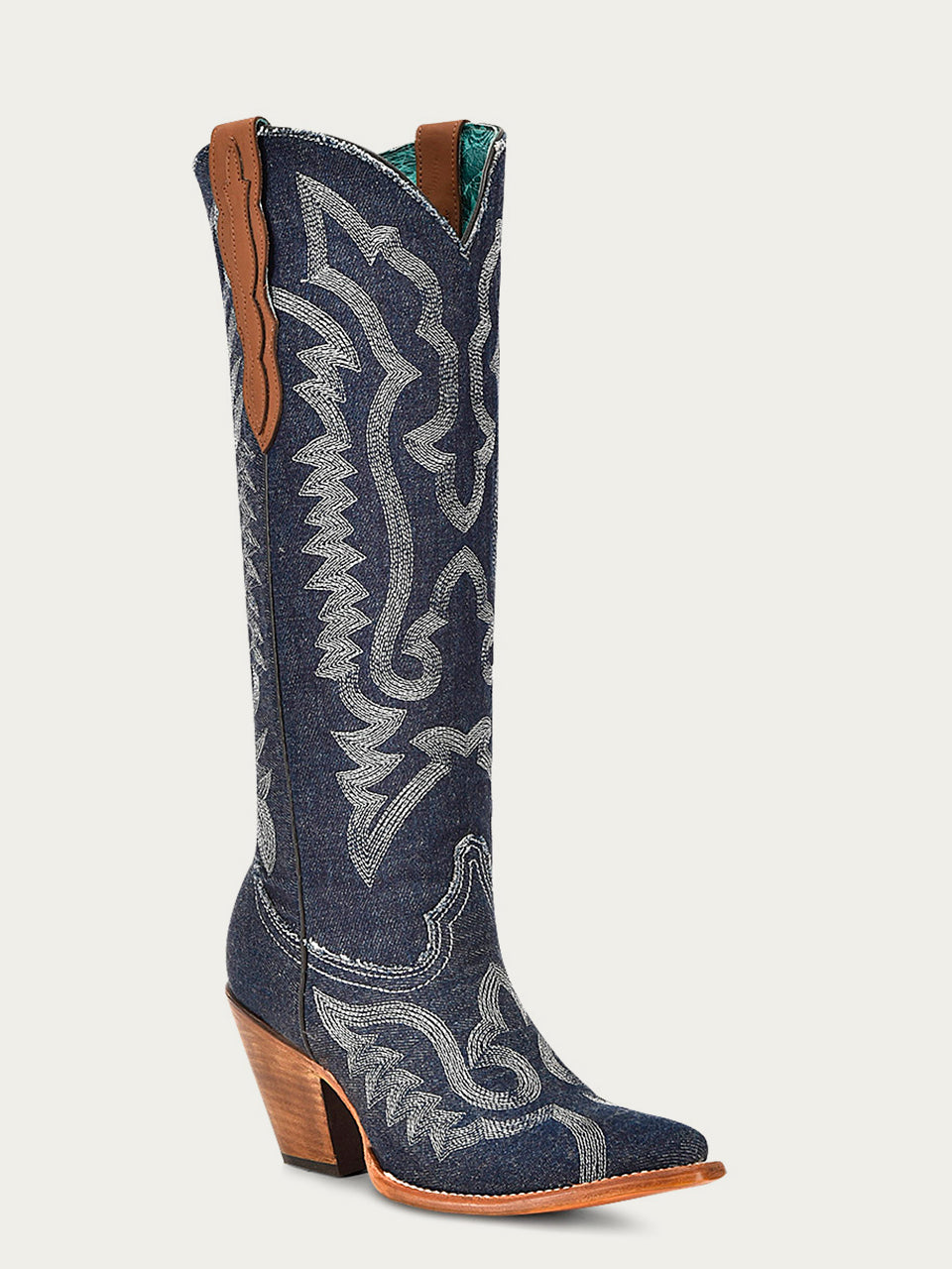 Z5226 - WOMEN'S WHITE EMBROIDERY DENIM TALL TOP POINTED TOE COWBOY BOOT