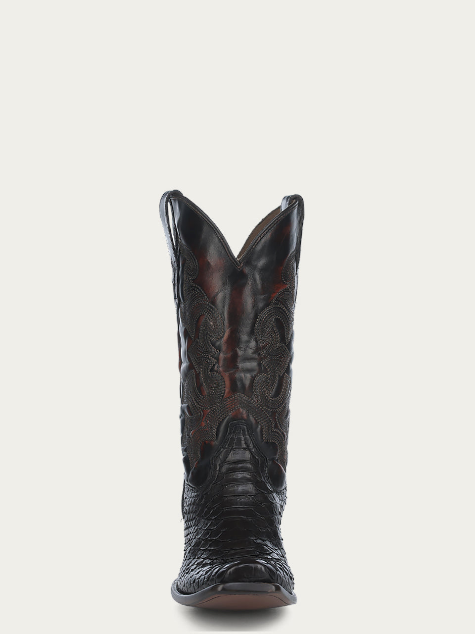 A4647 - MEN'S EMBROIDERY HONEY COWHIDE SHAFT BLACK PYTHON NARROW SQUARE TOE COWBOY BOOT
