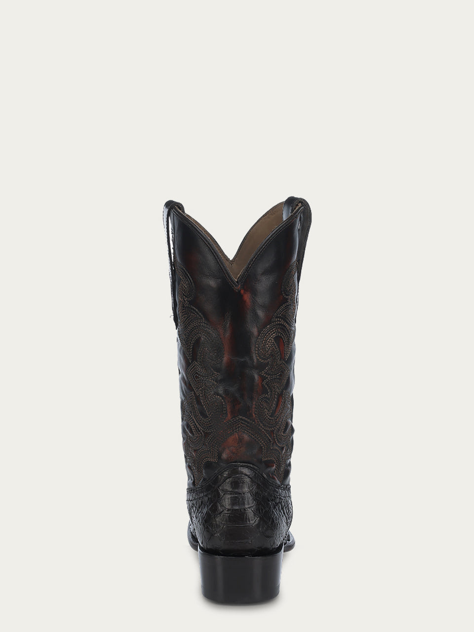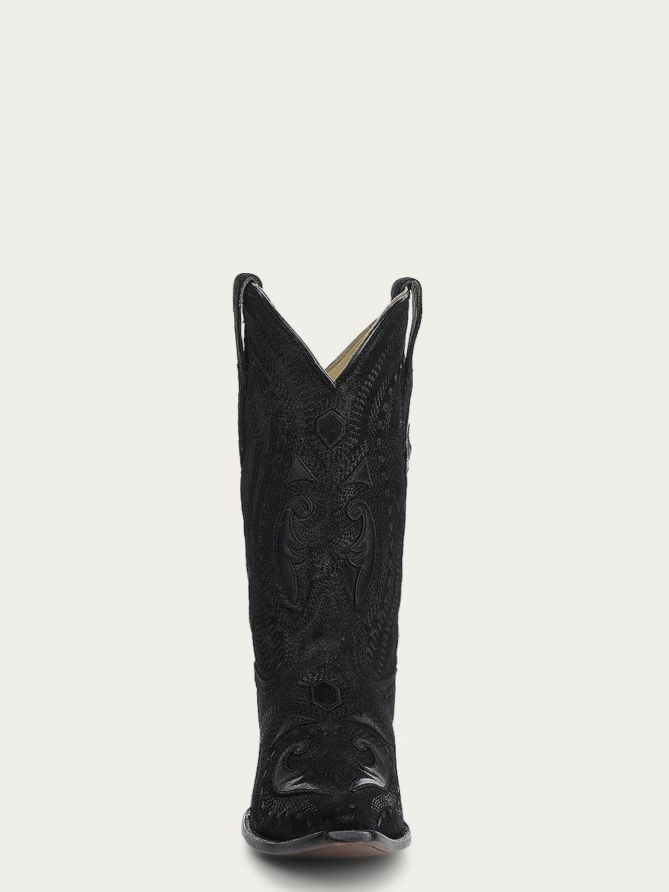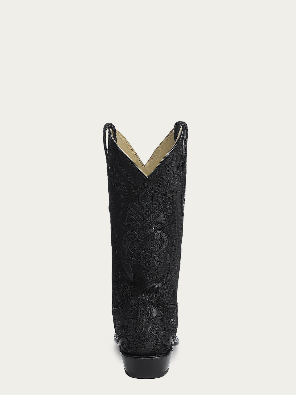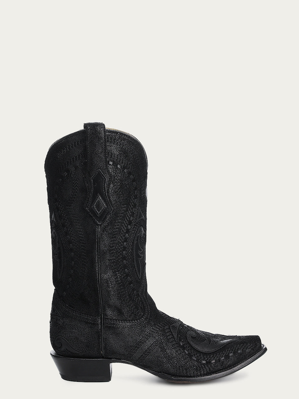 A4663 - MEN'S EMBROIDERY WITH WOVEN DETAIL AND OVERLAY FULL BLACK SNIP TOE COWBOY BOOT