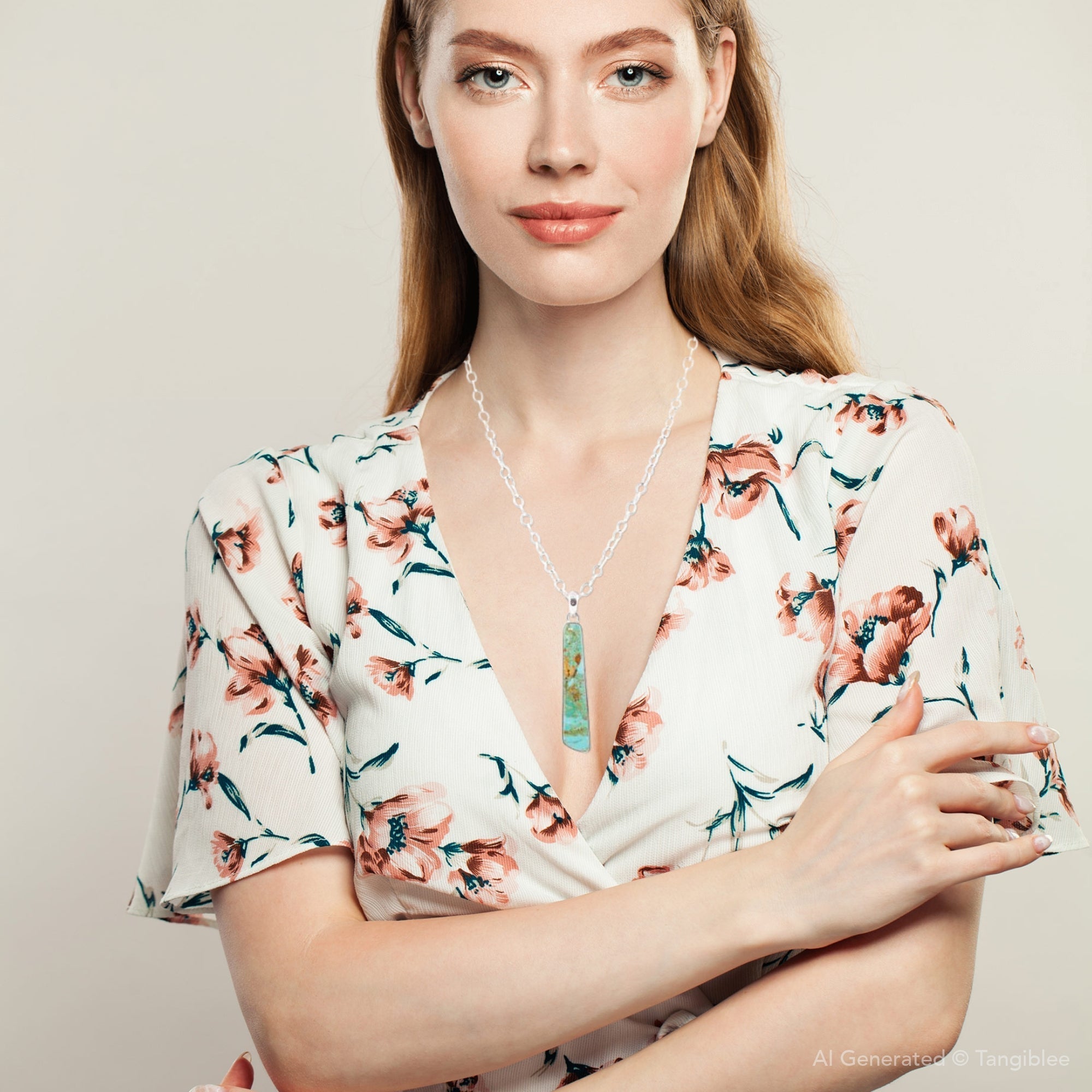 Pueblo Blue Turquoise and Sterling Silver Pendant Necklace