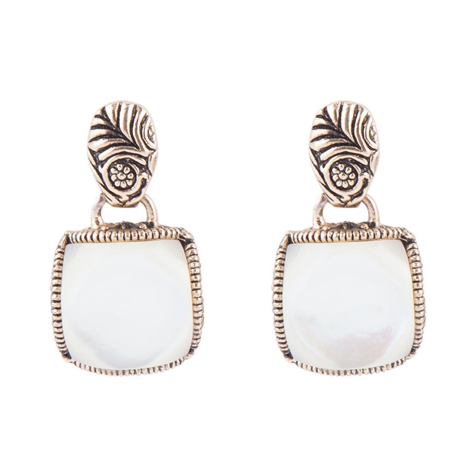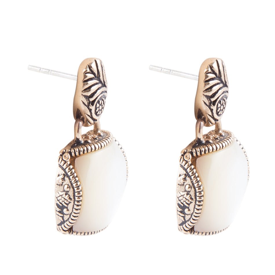 White Mother of Pearl Lotus Post Golden Drop Earrings