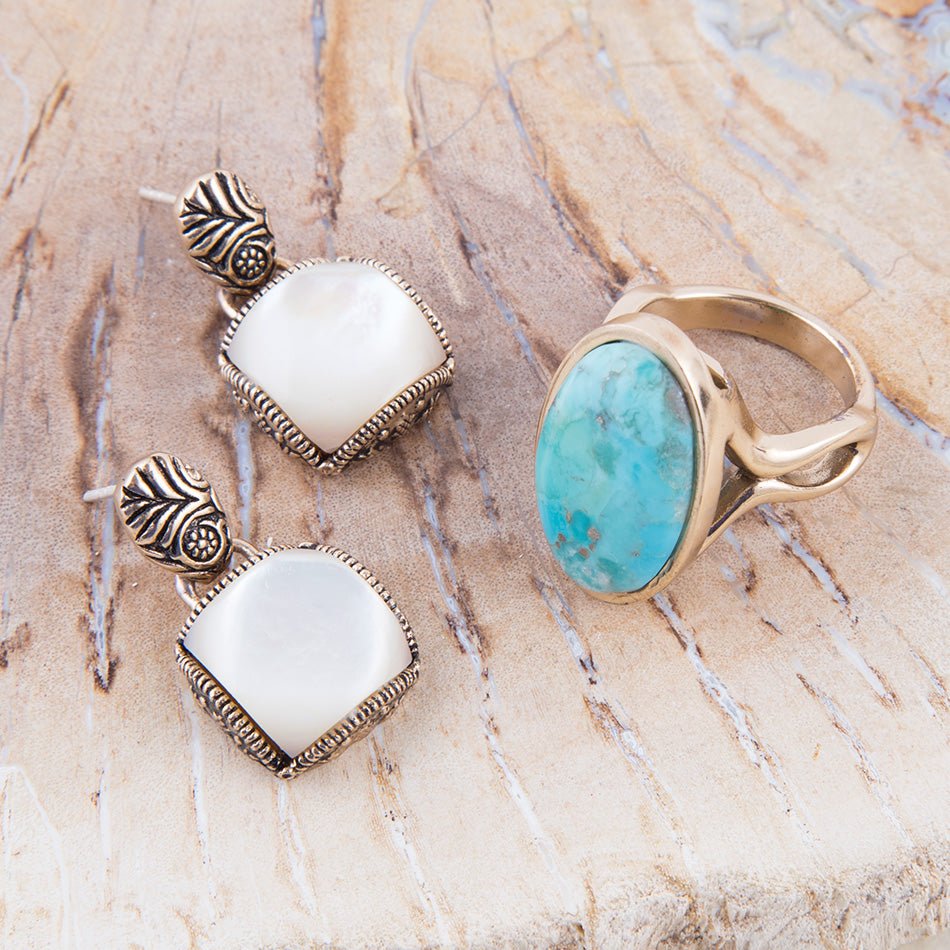Double Up Blue Turquoise and Black Onyx Golden Ring