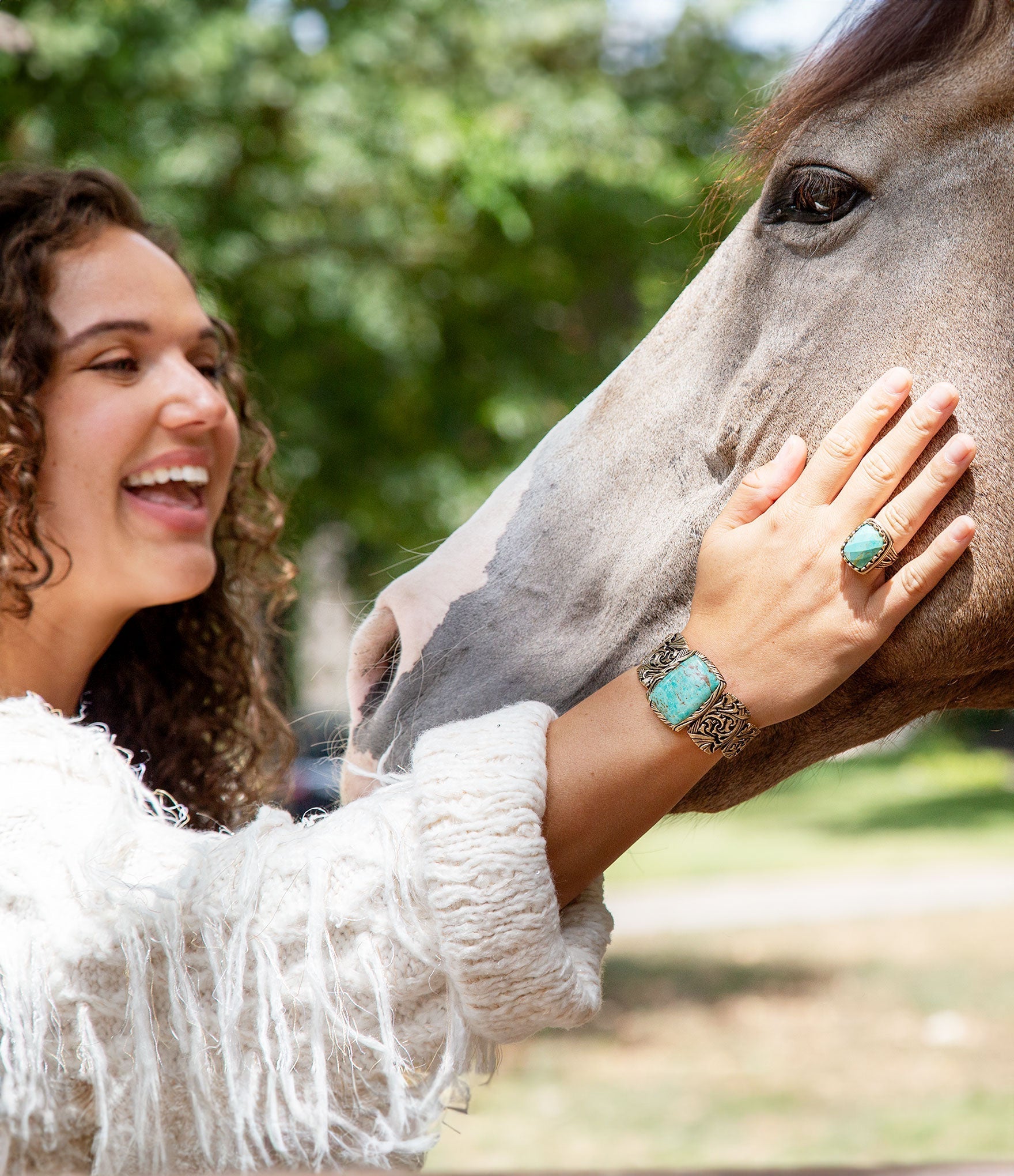 Blue Turquoise Size Adjustable Sterling Silver Ring