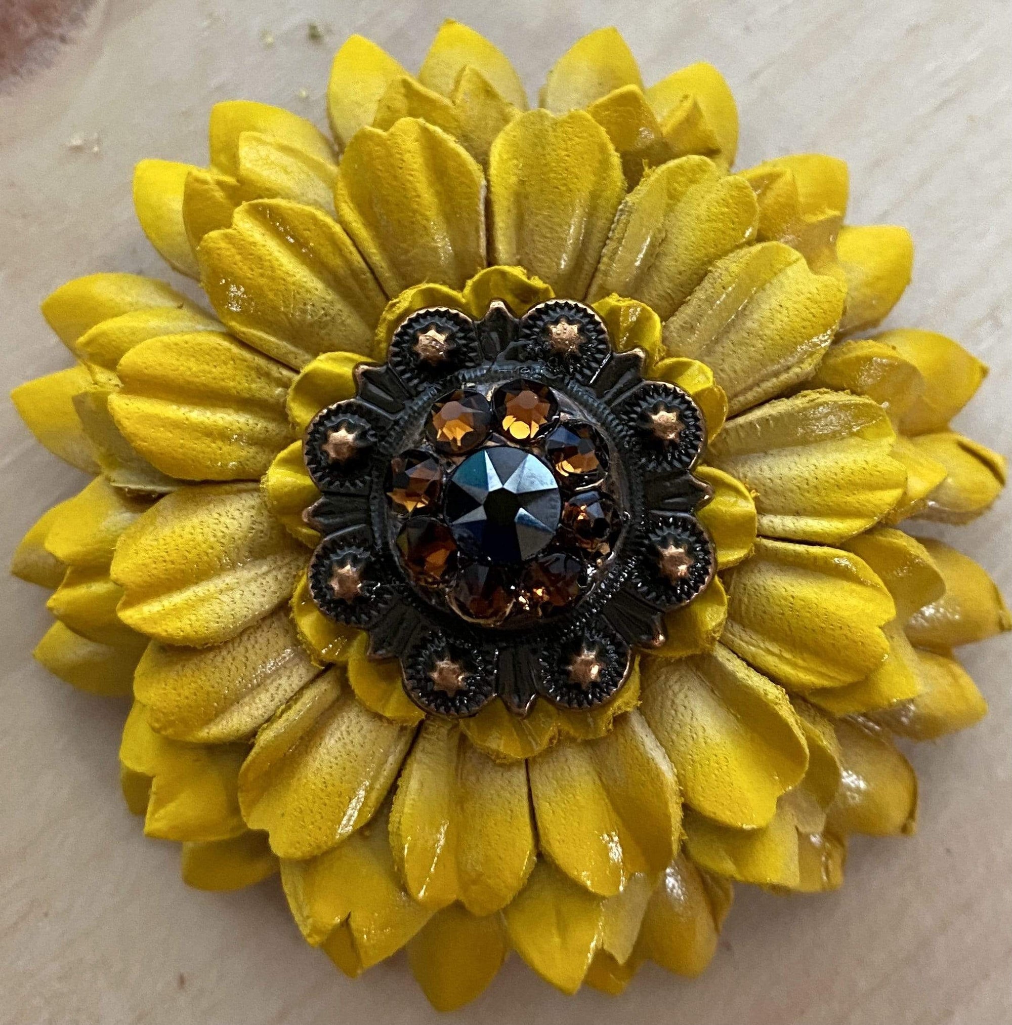 Yellow Gardenia Flower With Antique Silver Champagne & AB 1" Concho