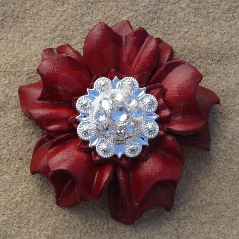 Silver Carnation Flower With Antique Silver Ruby and AB 1" Concho