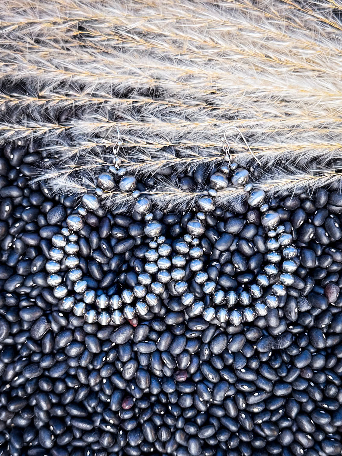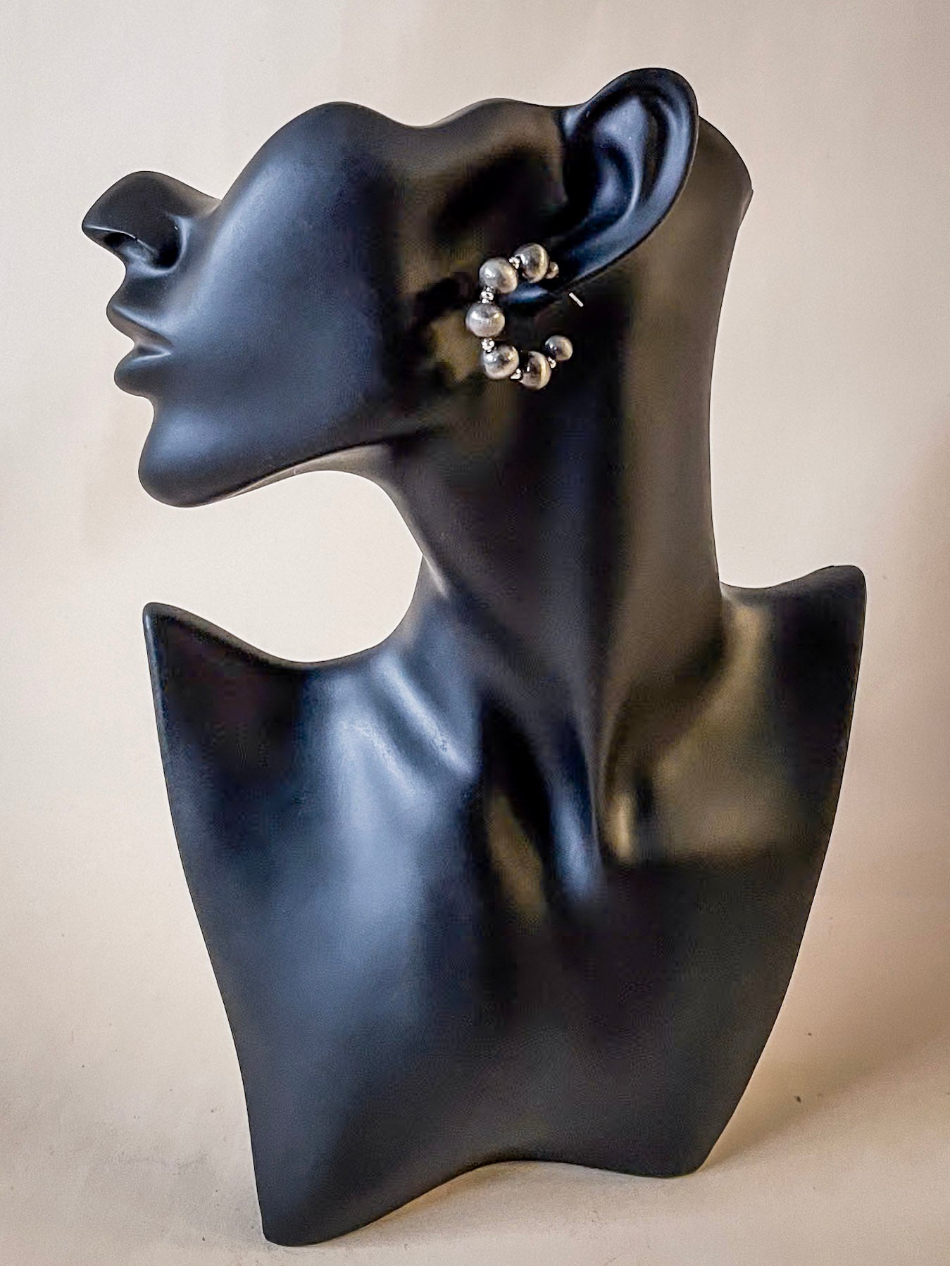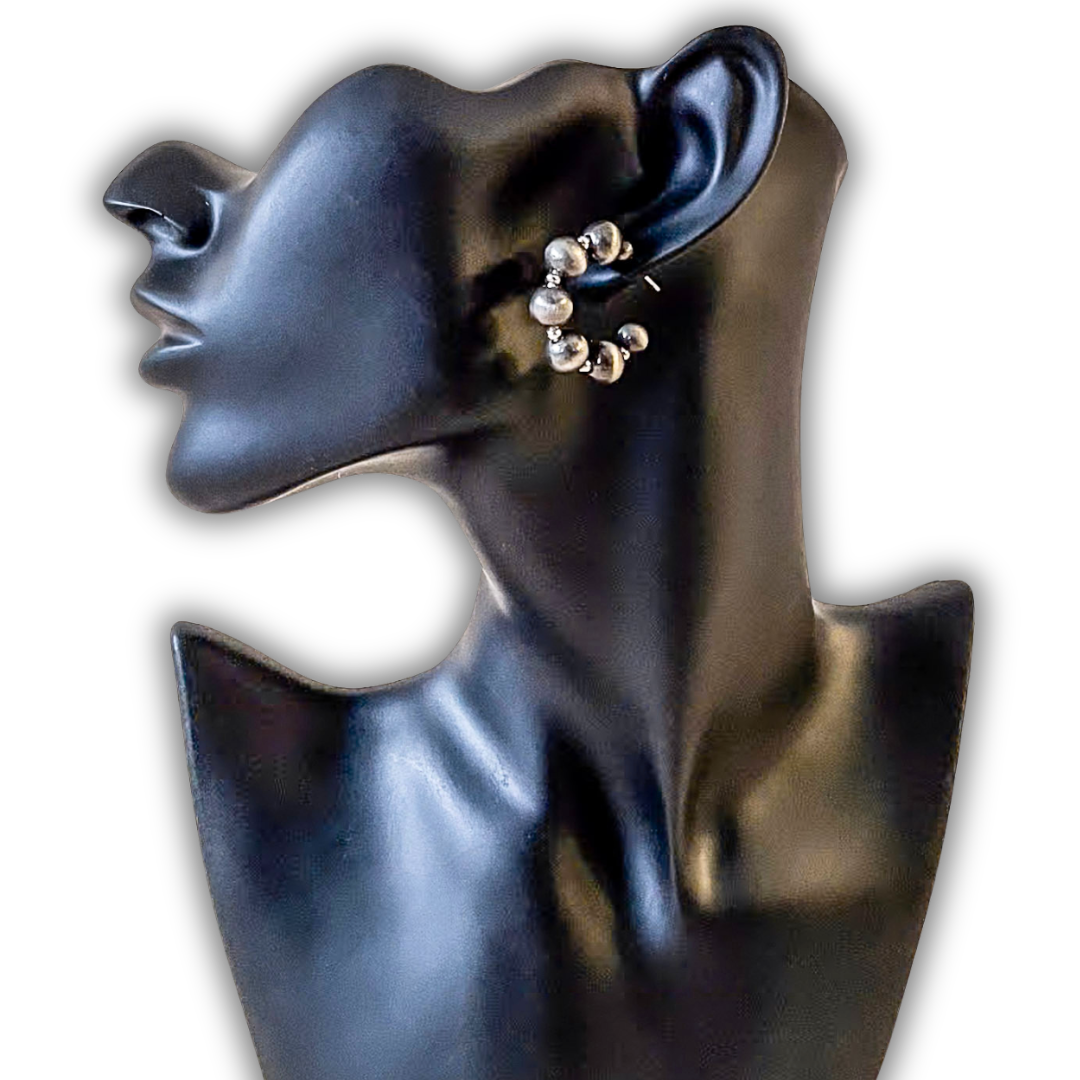 Betsy Navajo Style Pearl Semi Fashion Hoops - Silver