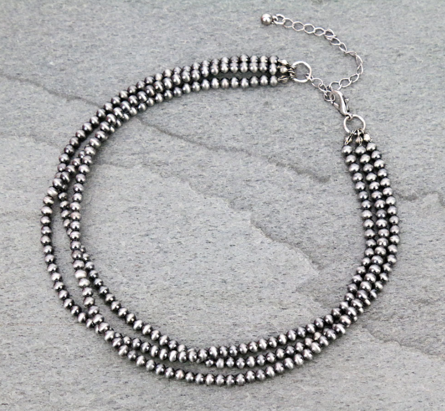 Wesley Navajo Style Pearl Layered Fashion Choker Necklace - Natural