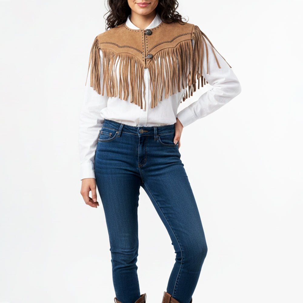American Darling Western Leather Fringe Cape/Shawl Suede Yoke Tassel Jacket Vest