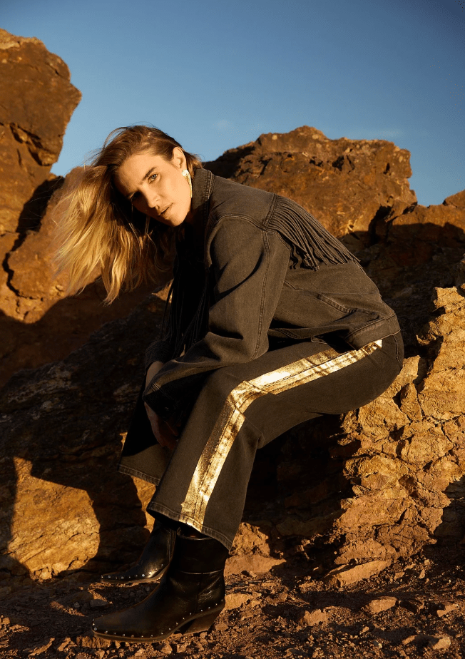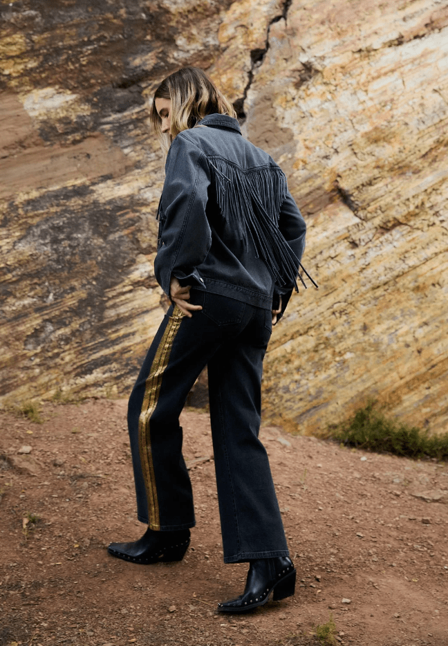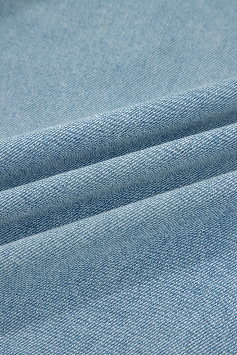 Denim Collared Zip-Up Elastic Edge Pocketed Jacket