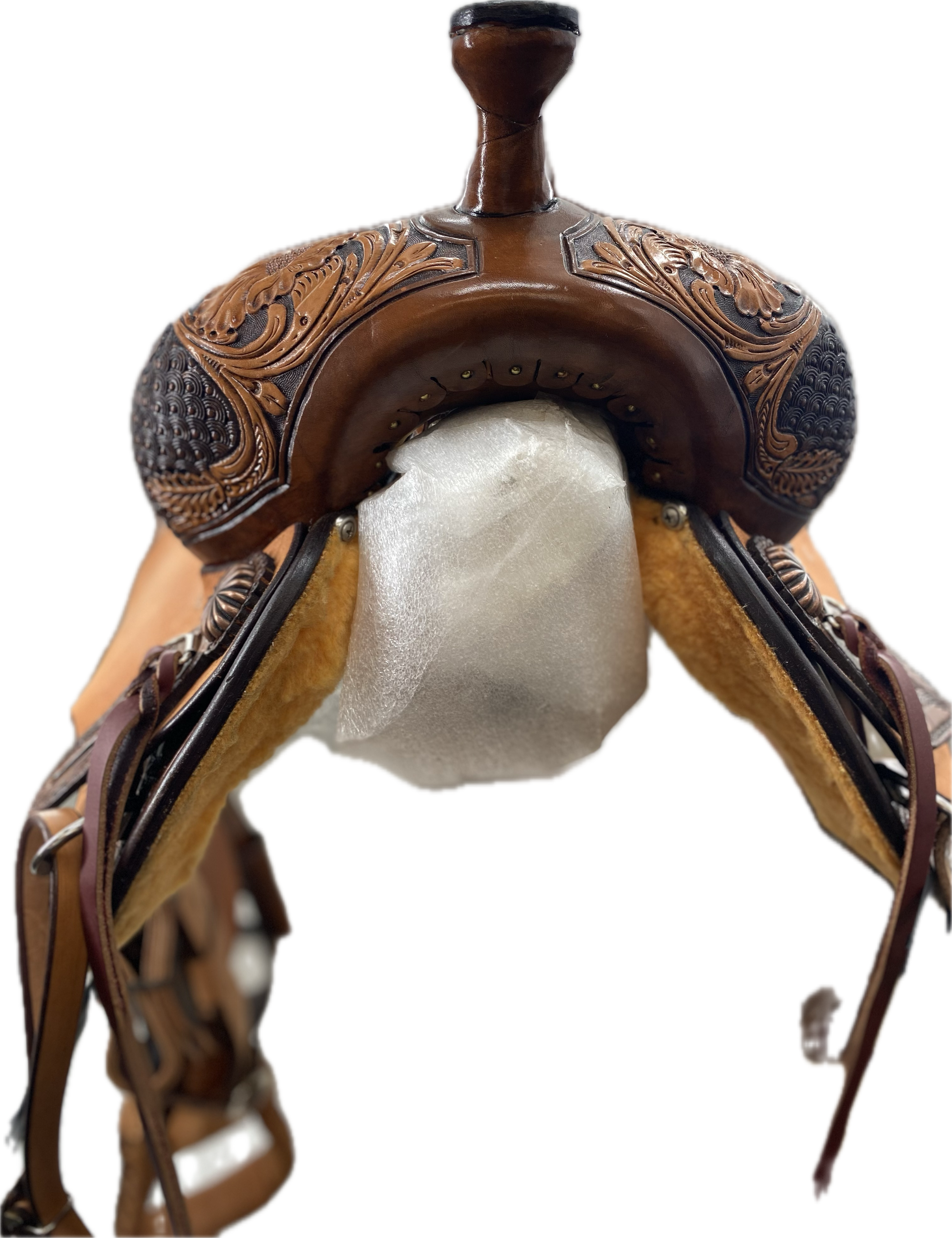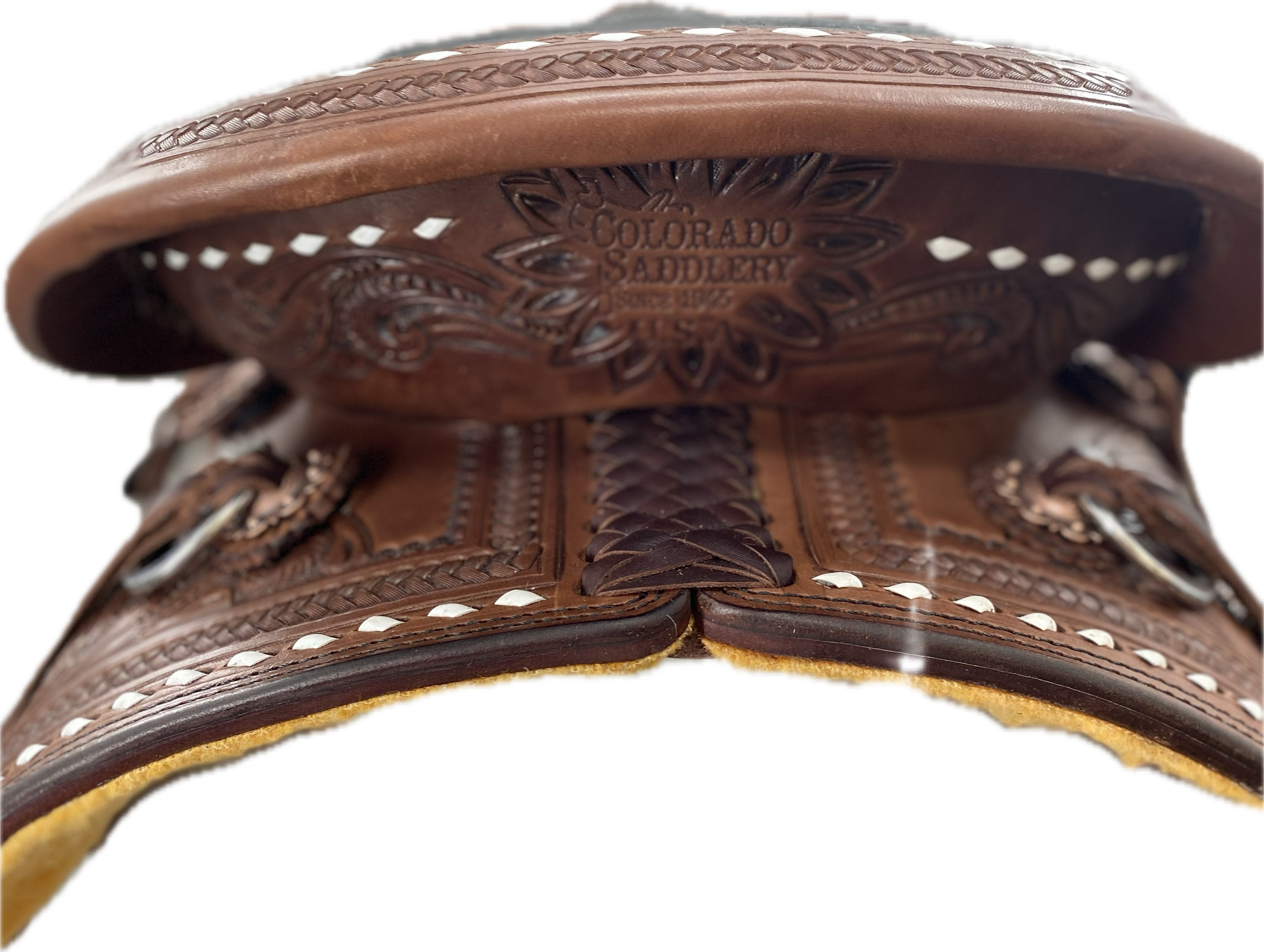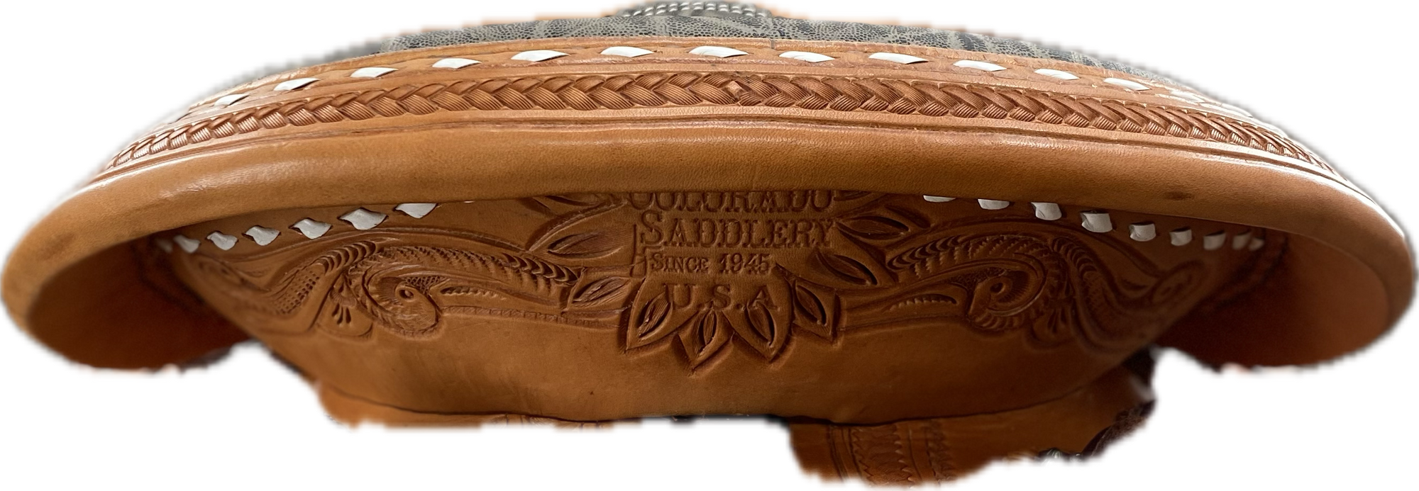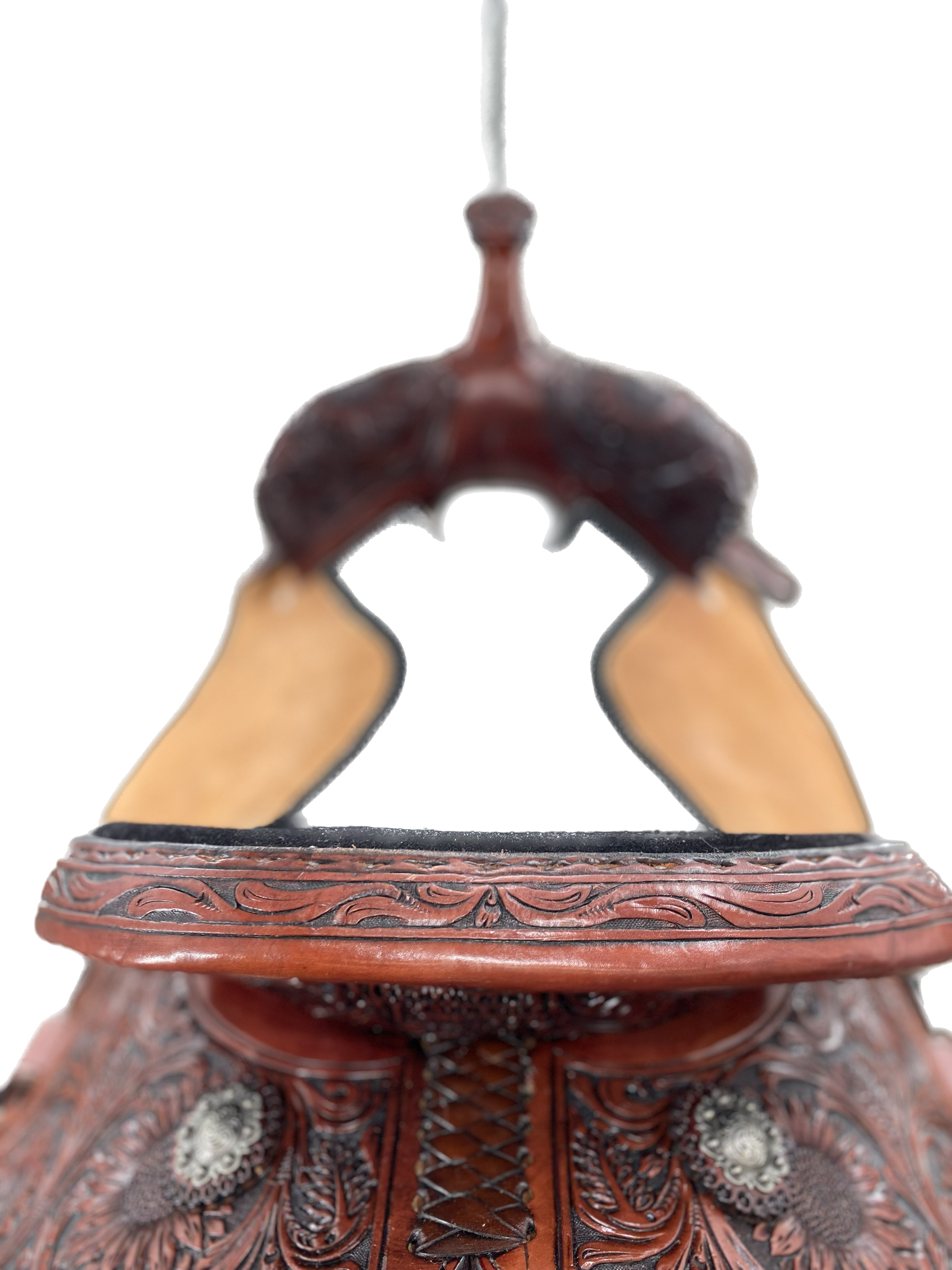 Premium Leather Saddle Bag with Hand Stamped Border- 7"