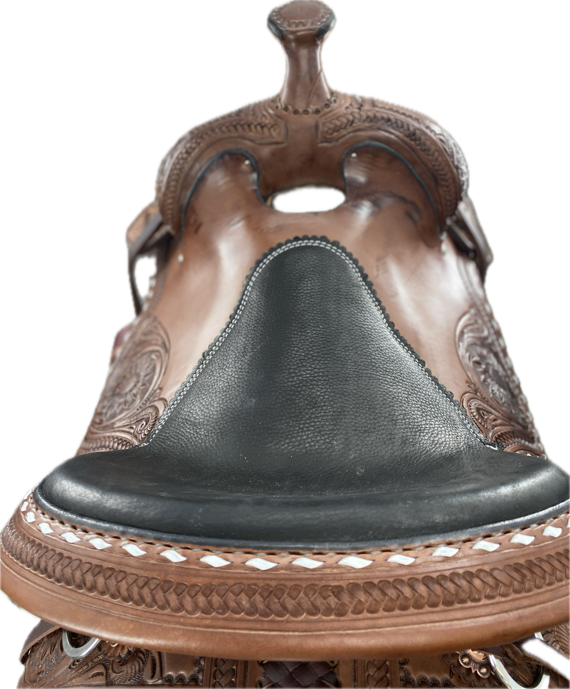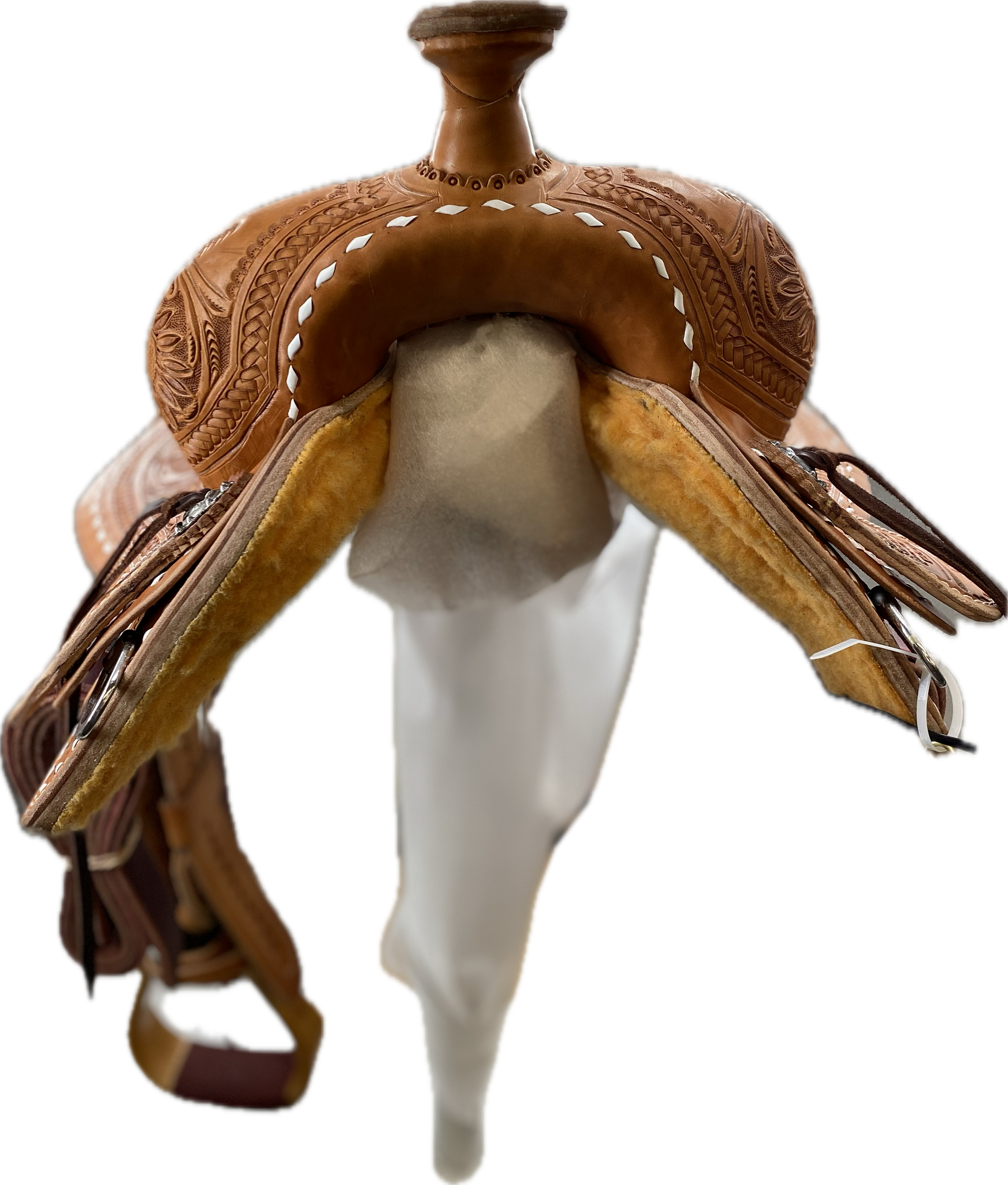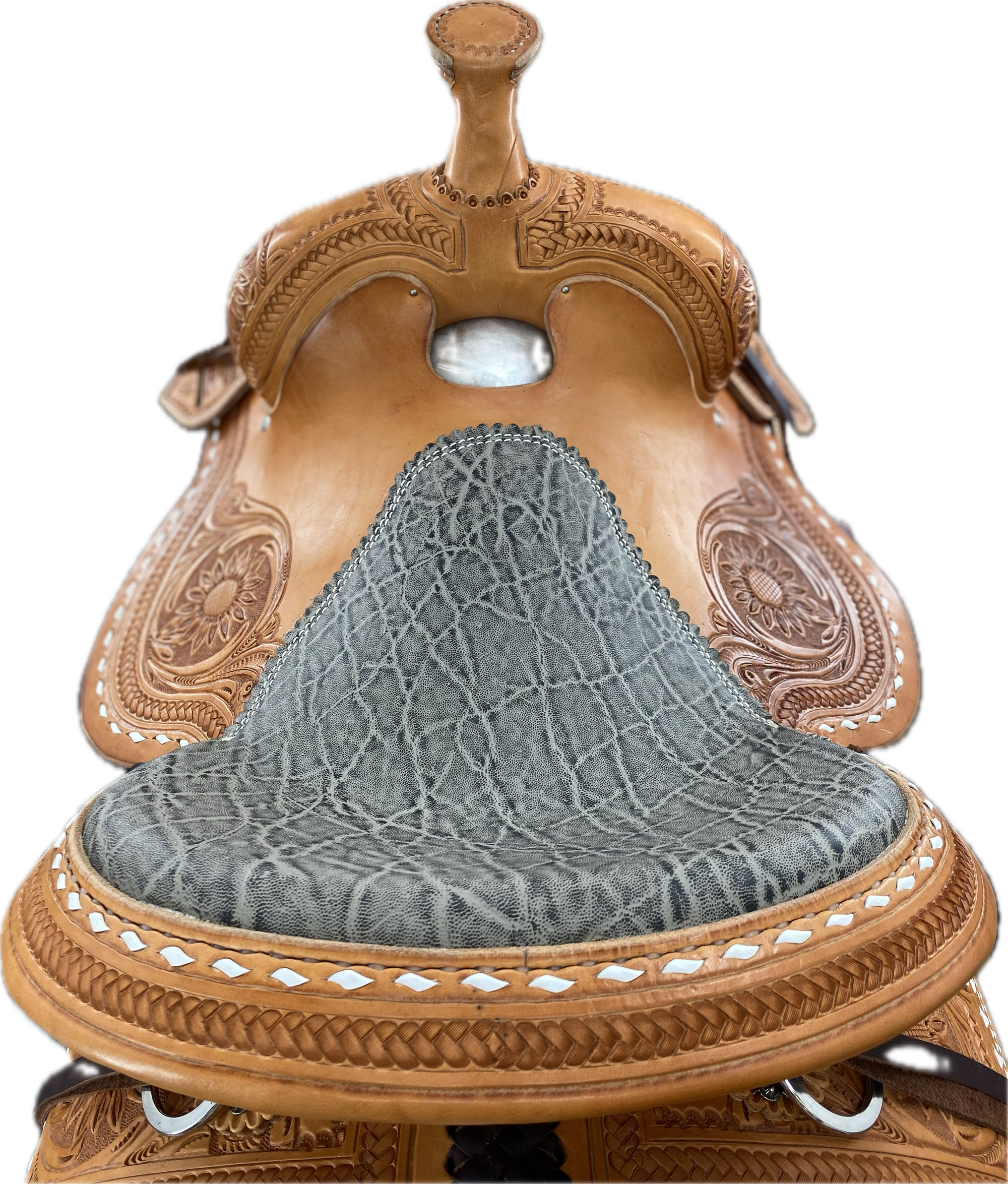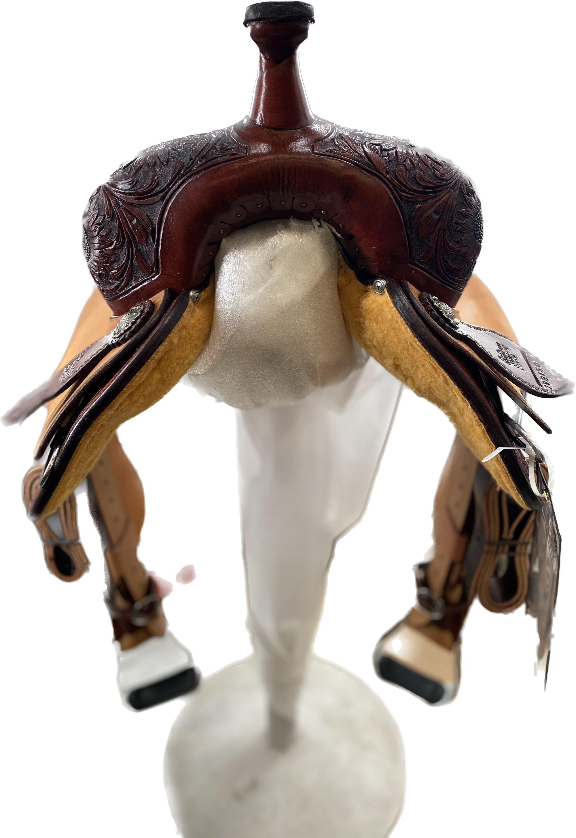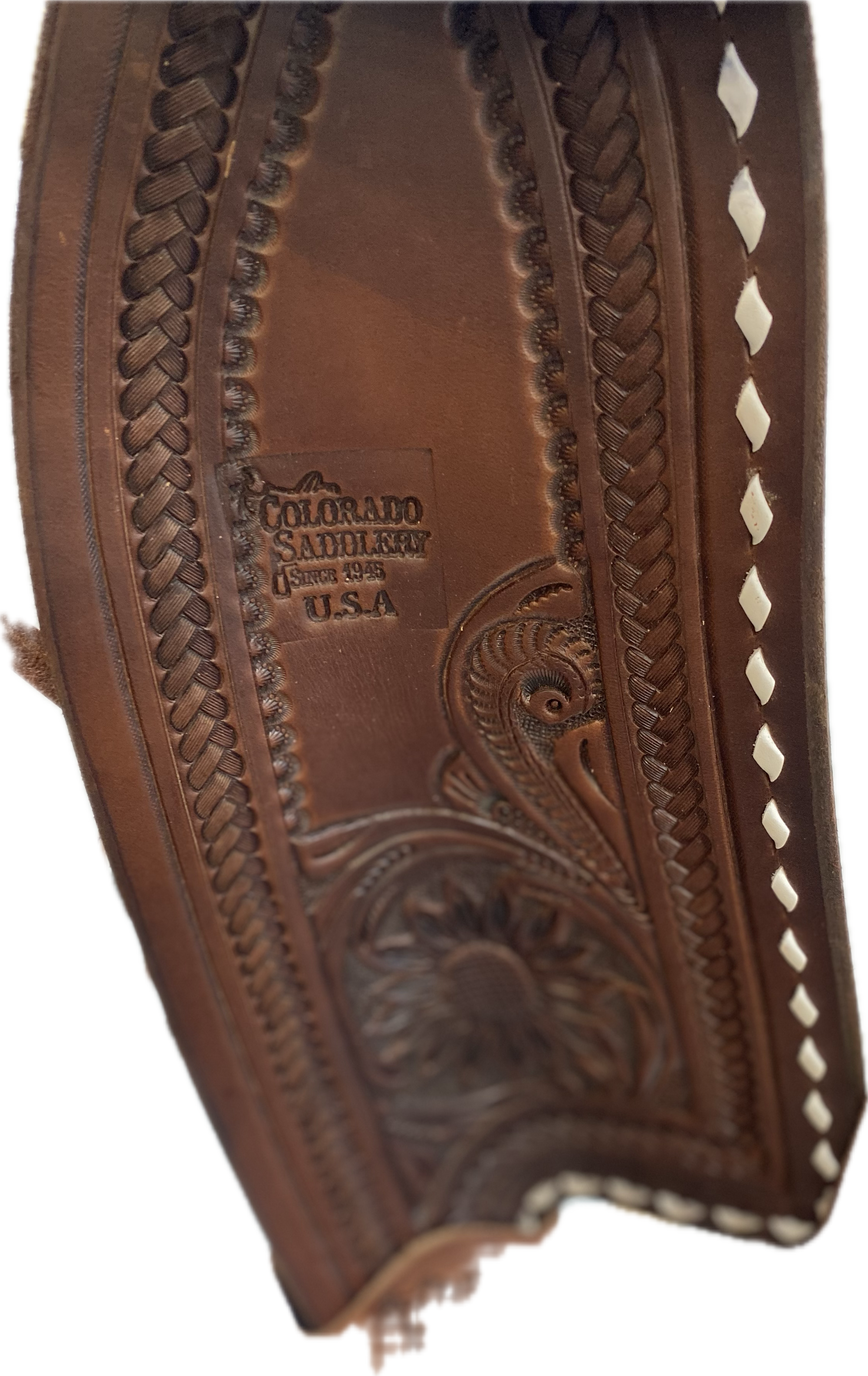 Premium Leather Saddle Bag with Hand Stamped Border- 7"