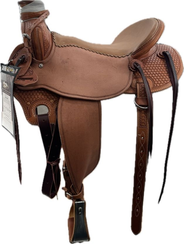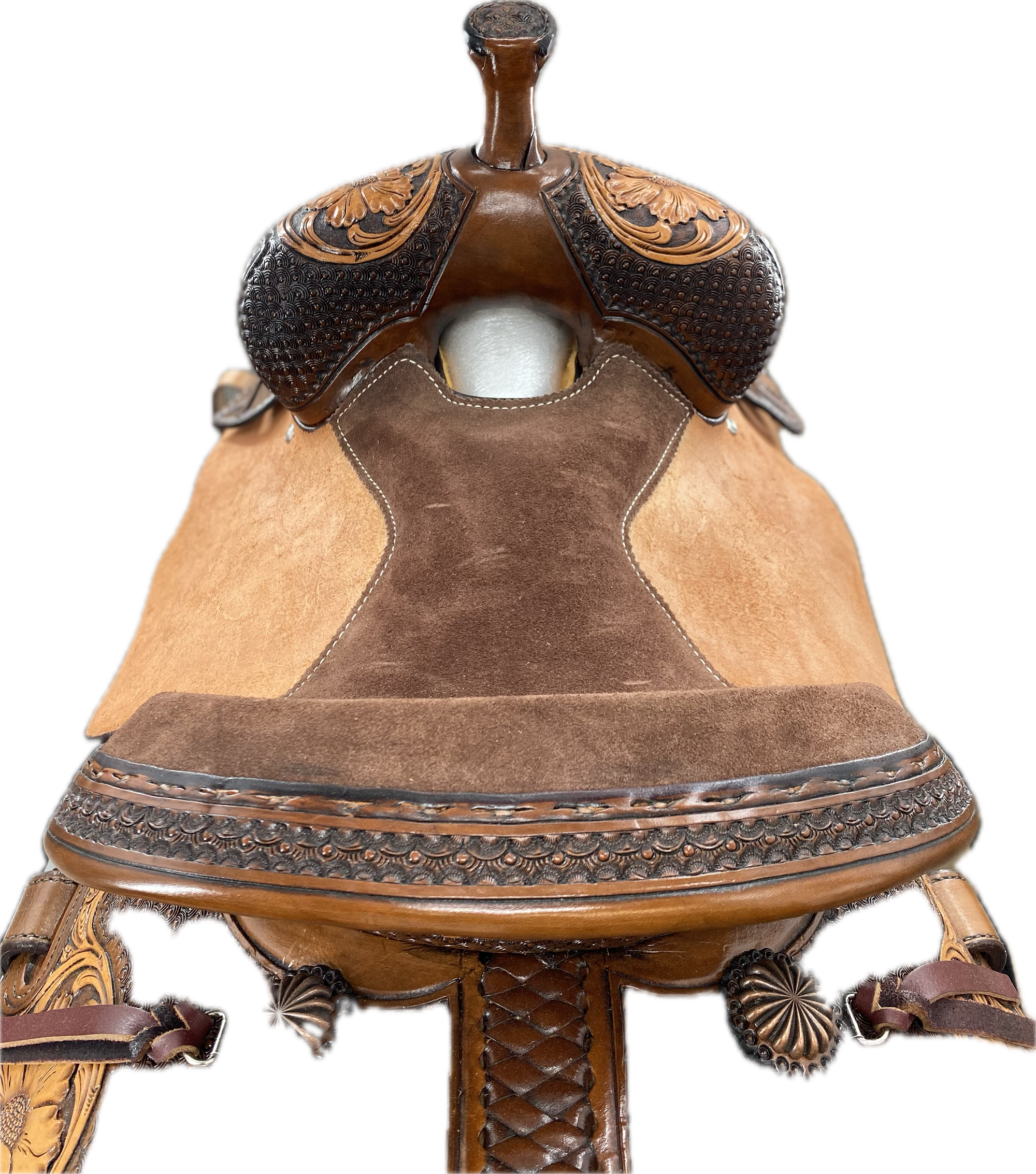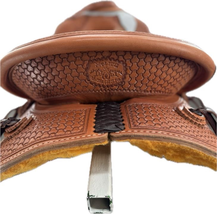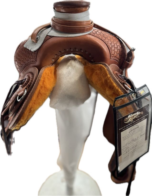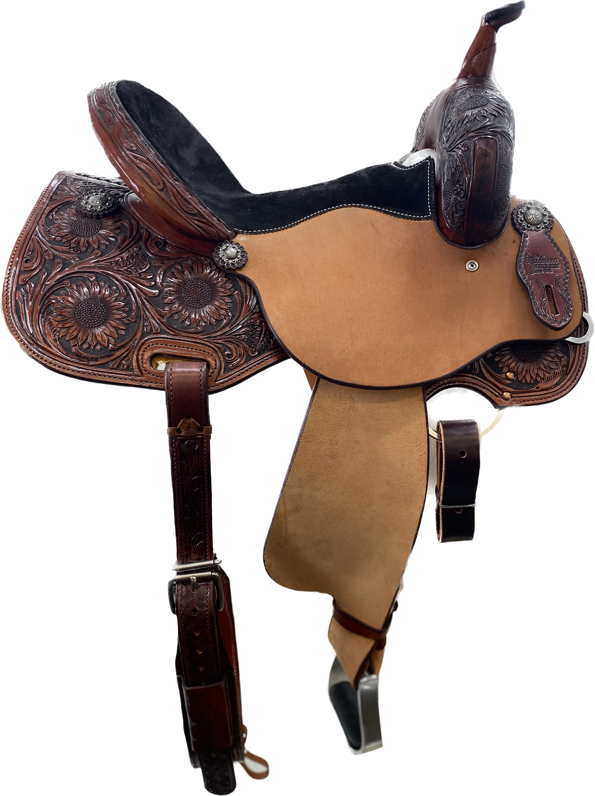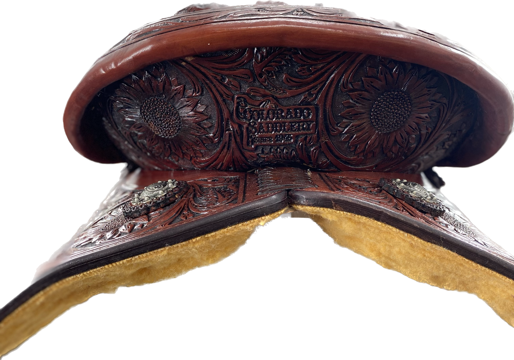 Premium Leather Saddle Bag with Hand Stamped Border- 7"