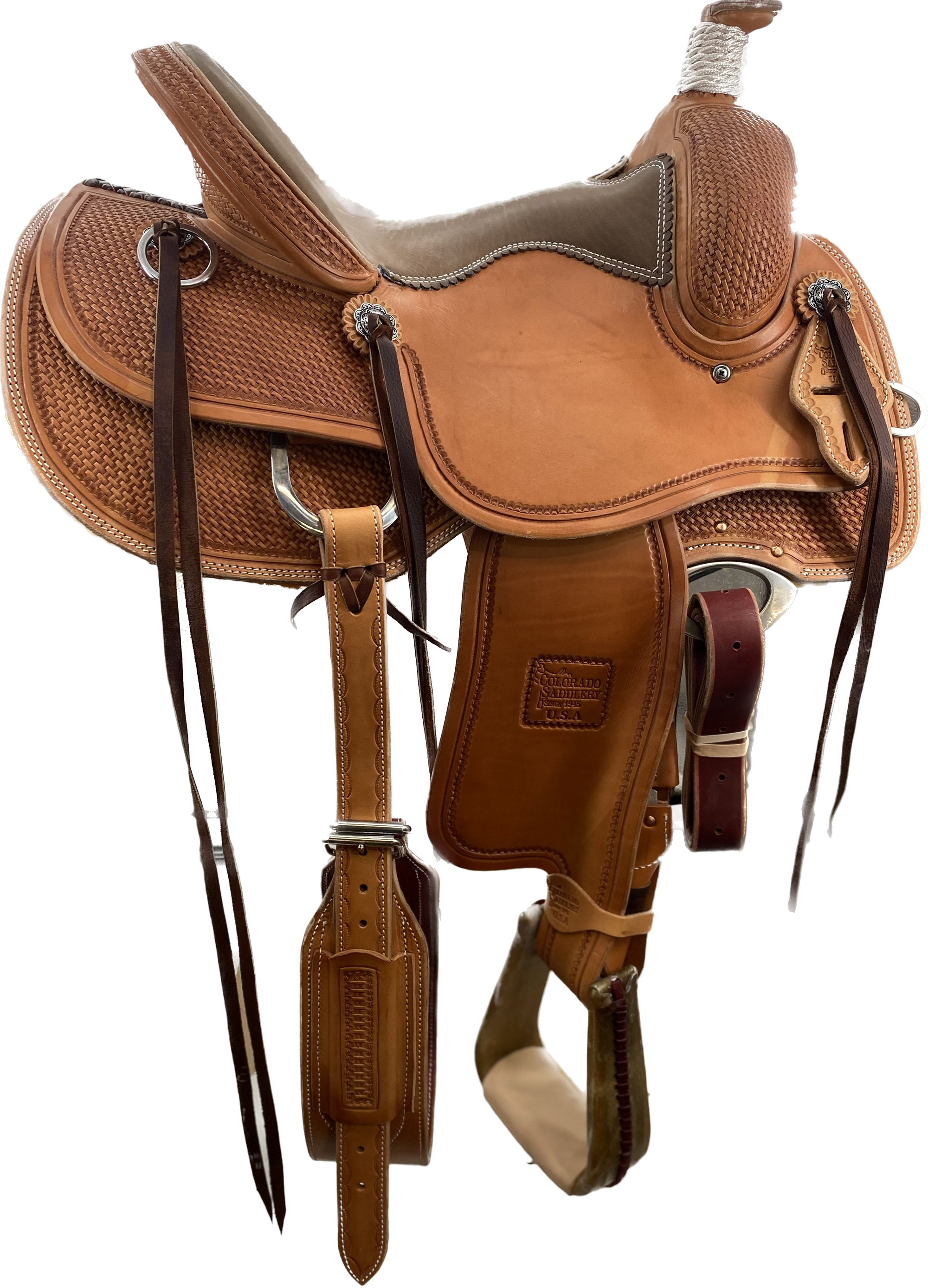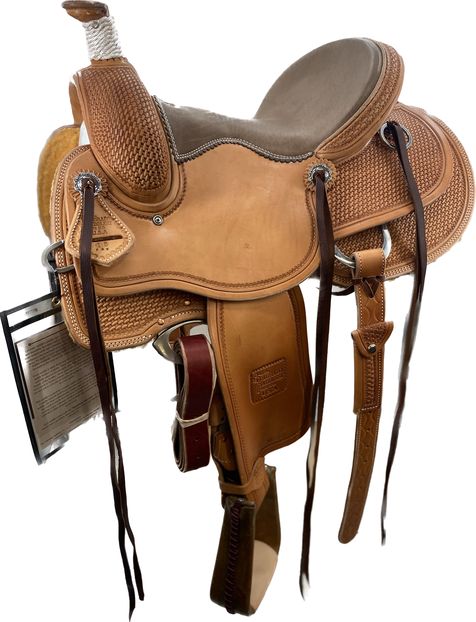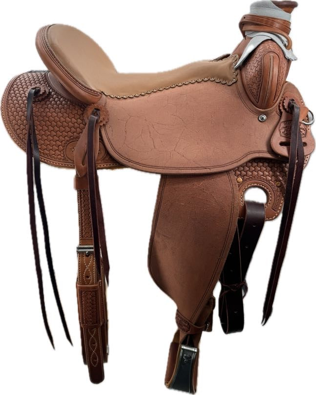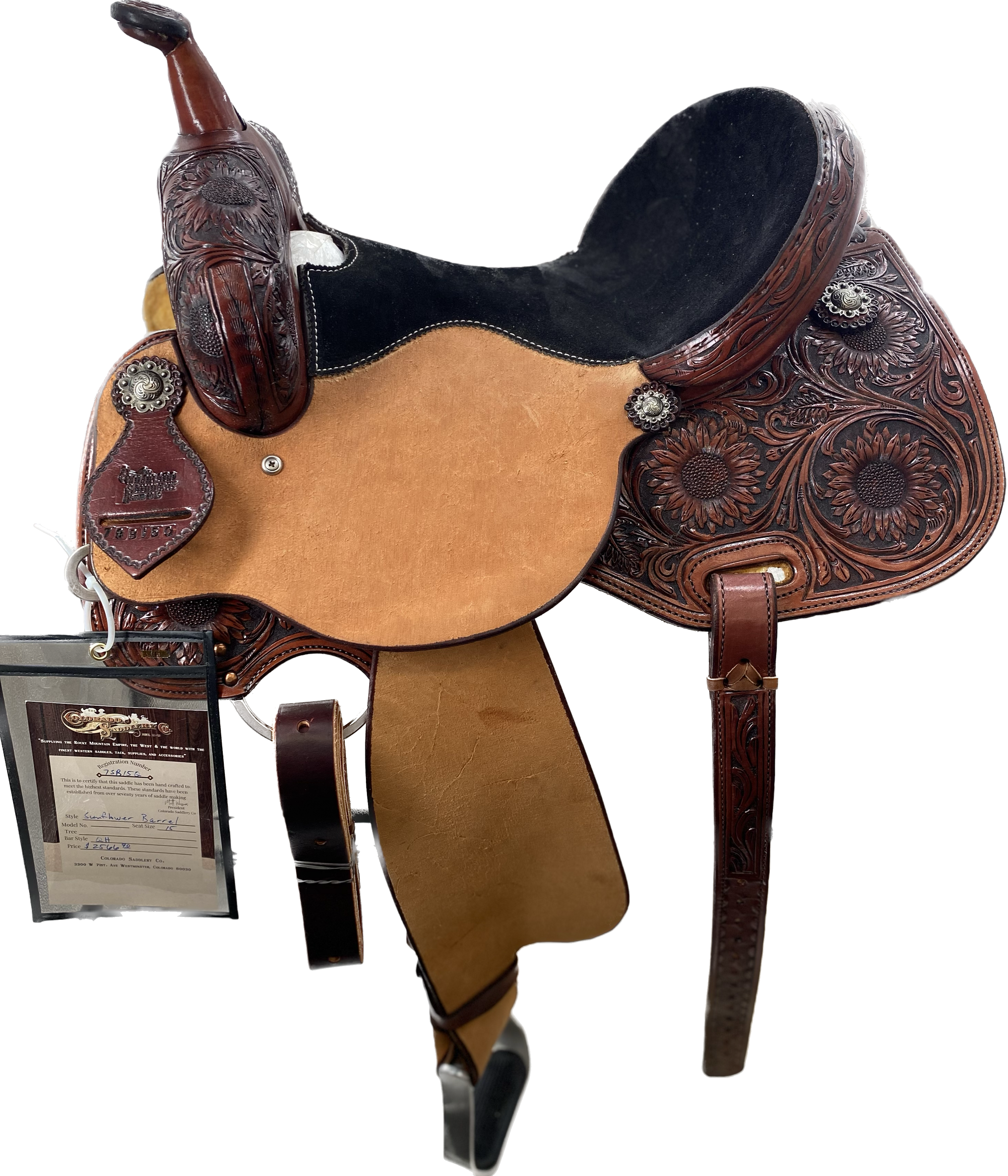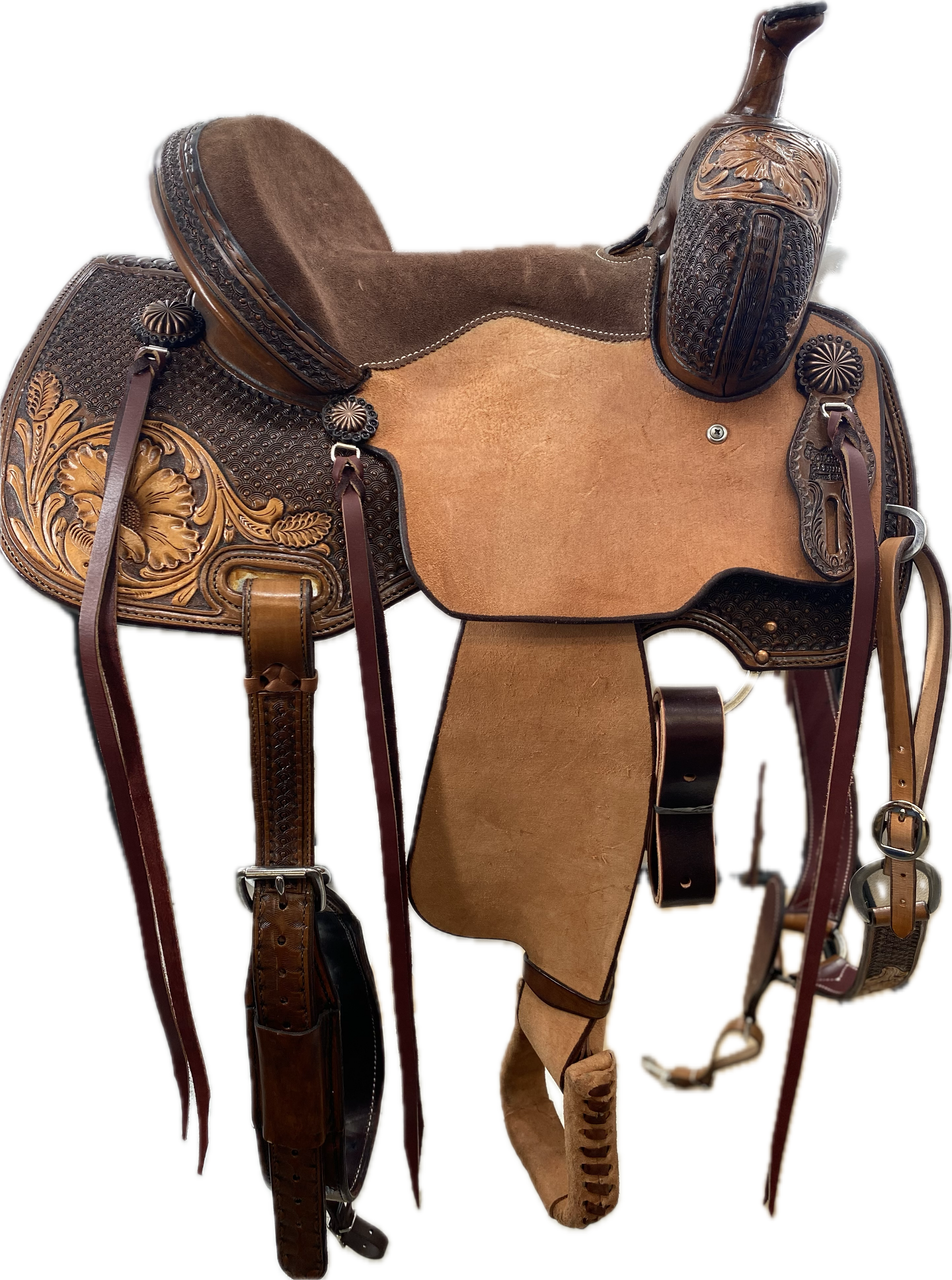 Premium Leather Saddle Bag with Hand Stamped Border- 7"