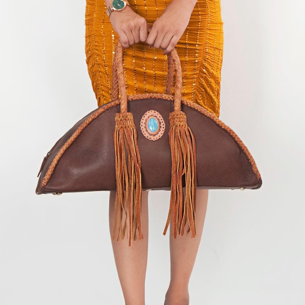 OHLAY WEEKENDER Upcycled Canvas Embossed Hair-on Genuine Leather women bag western handbag purse
