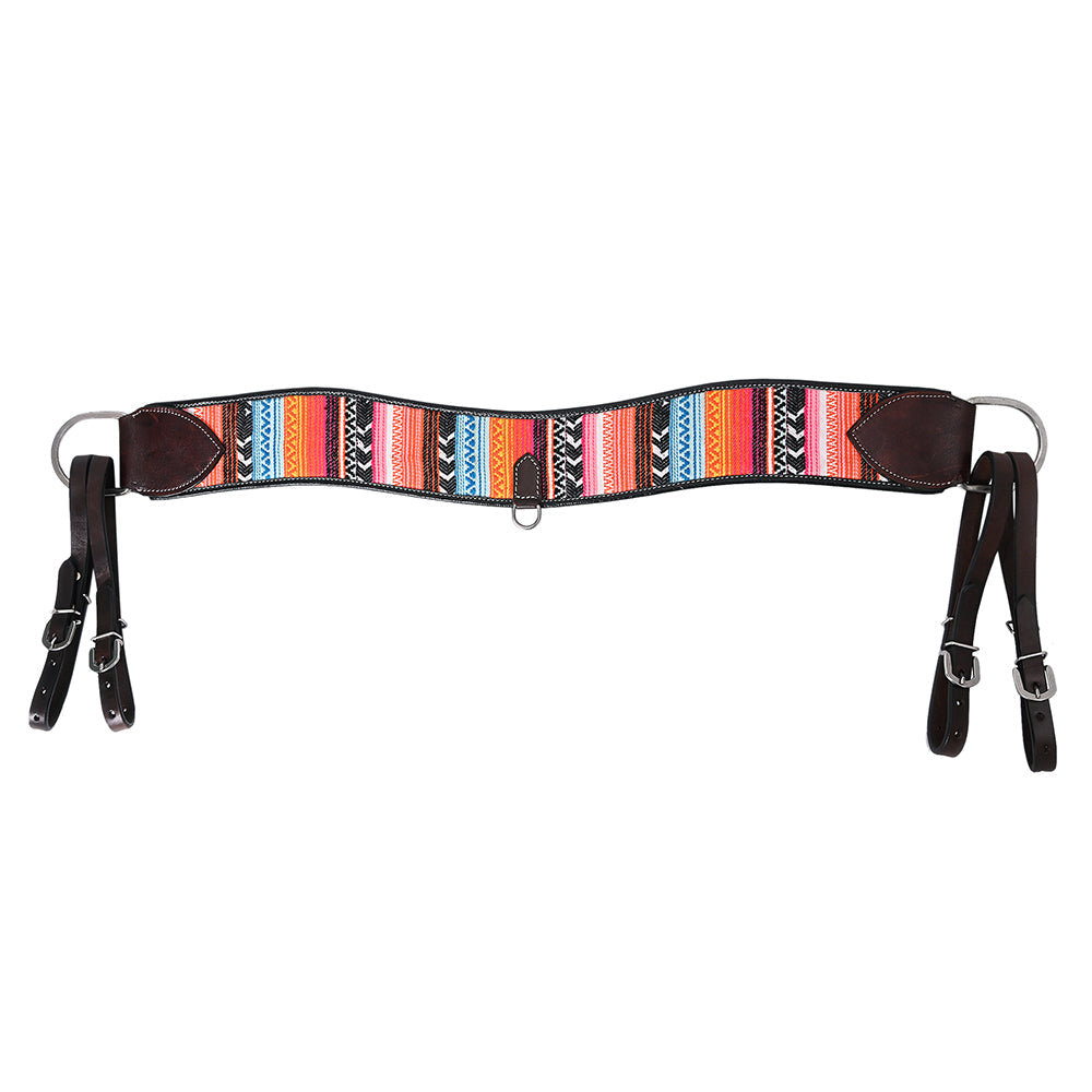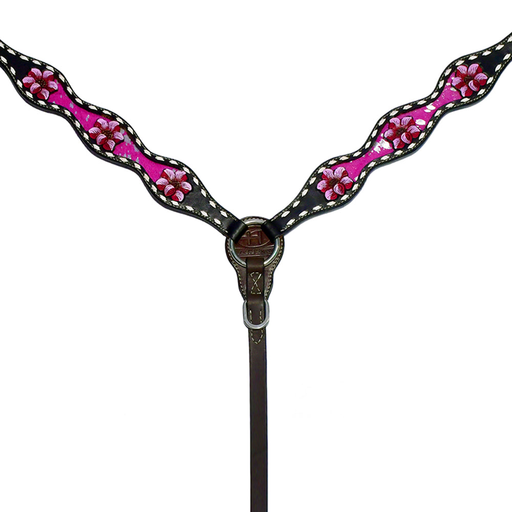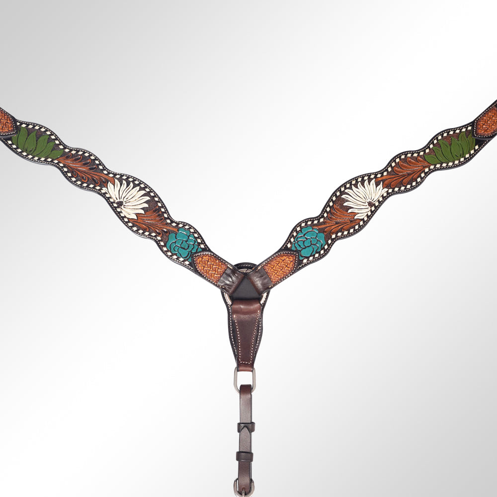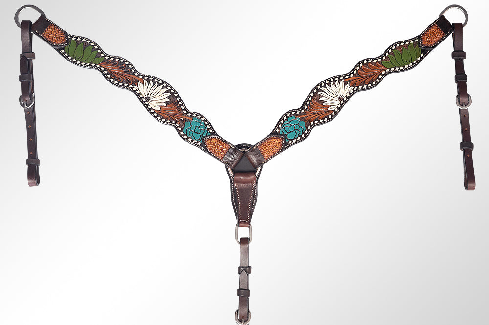 BAR H EQUINE Genuine Horse Hand Tooled Painted Arrow Leather Breast Collar Brown