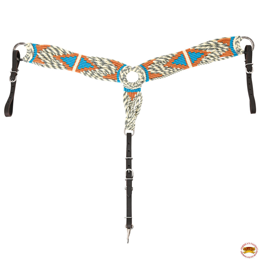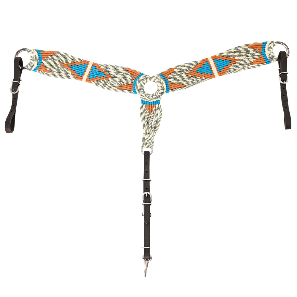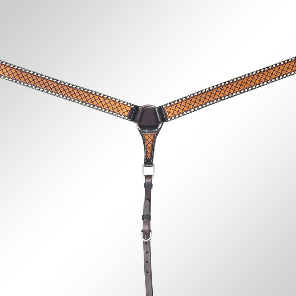 BAR H EQUINE Genuine Horse Hand Tooled Painted Arrow Leather Breast Collar Brown