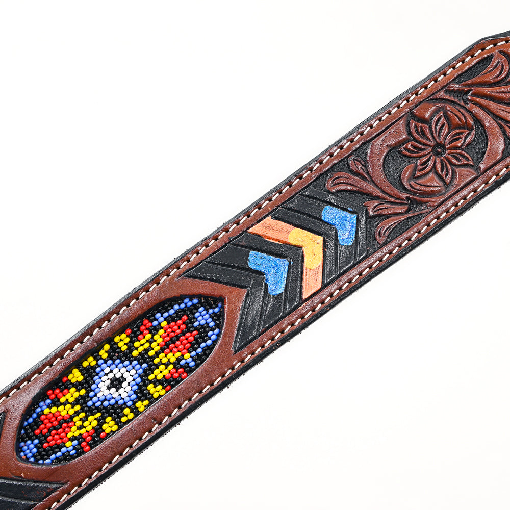 BAR H EQUINE Genuine Horse Western Leather Breast Collar Beaded Inlay Brown