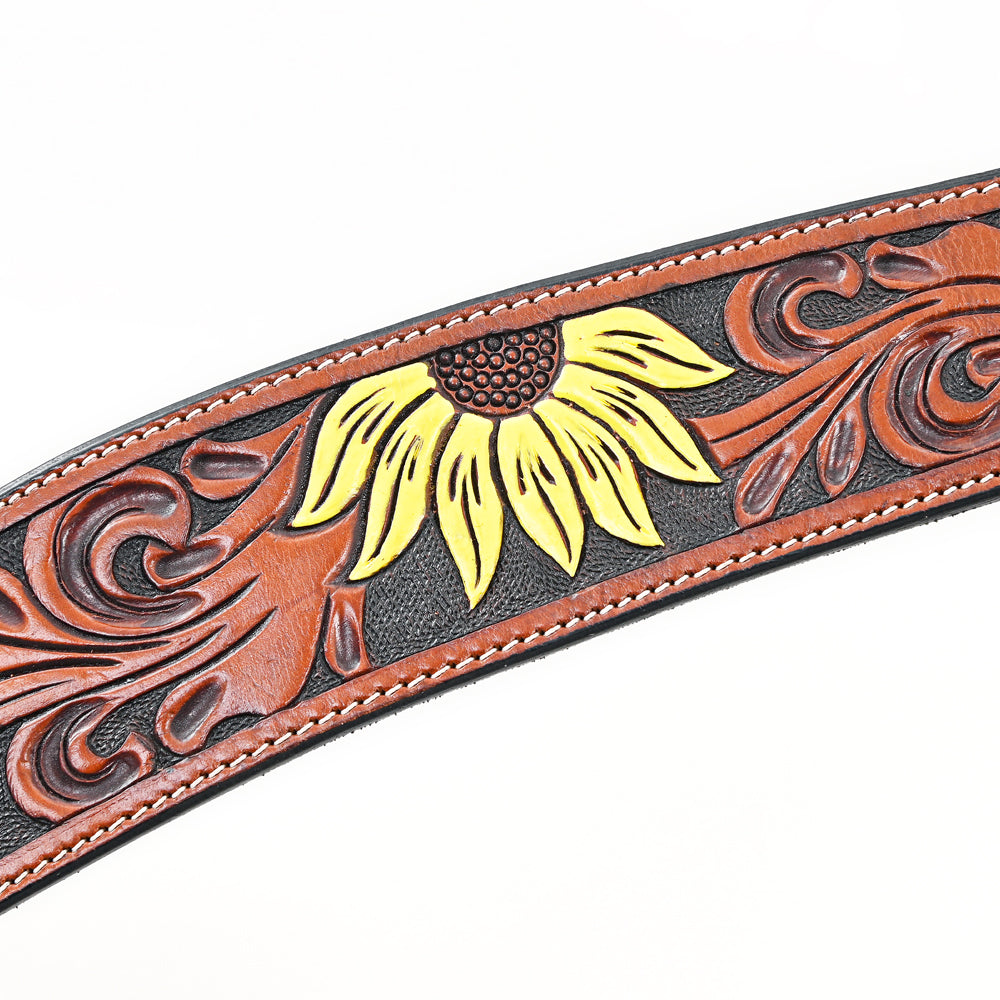 BAR H EQUINE Genuine Horse Hand Tooled Painted Sunflower Leather Breast Collar Tan