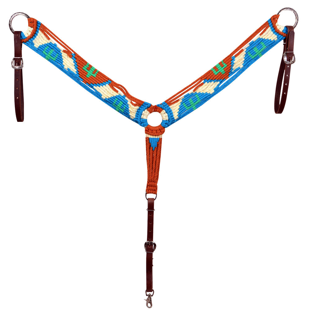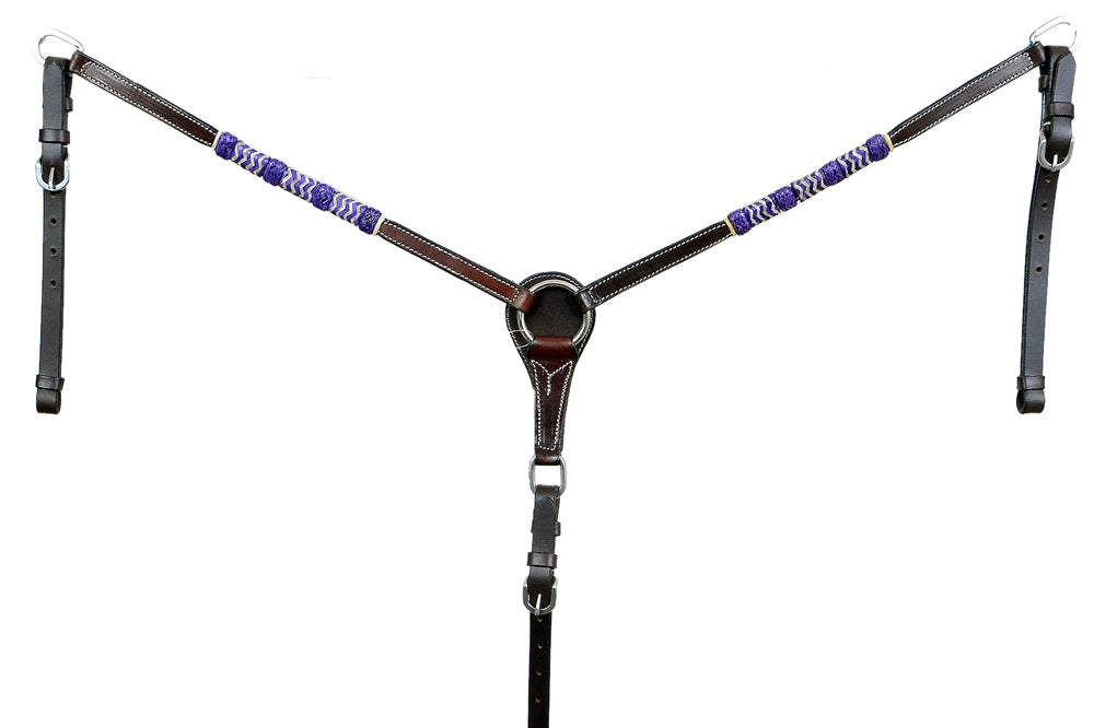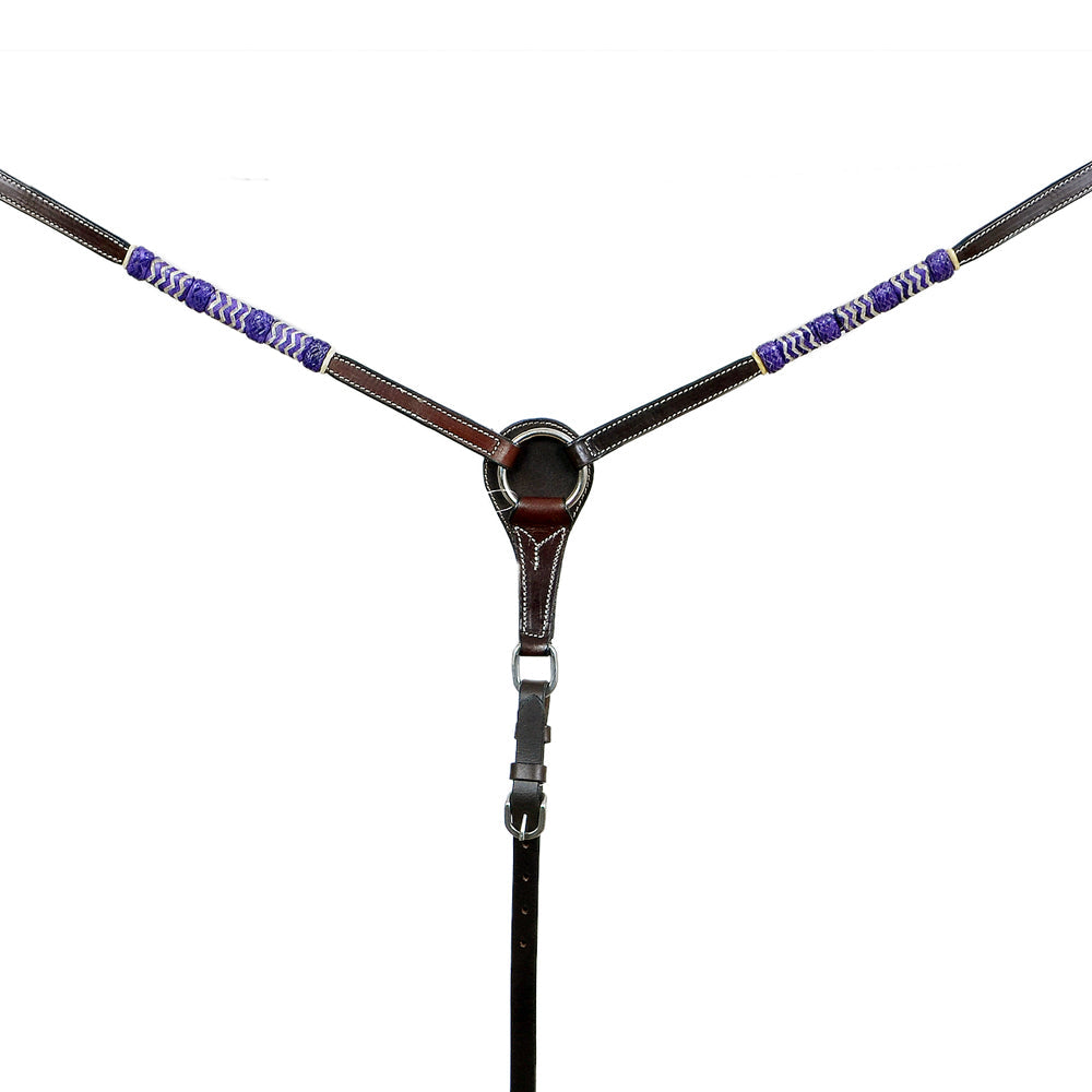 BAR H EQUINE Blue Rawhide Horse Western Leather Breast Collar Dark Brown