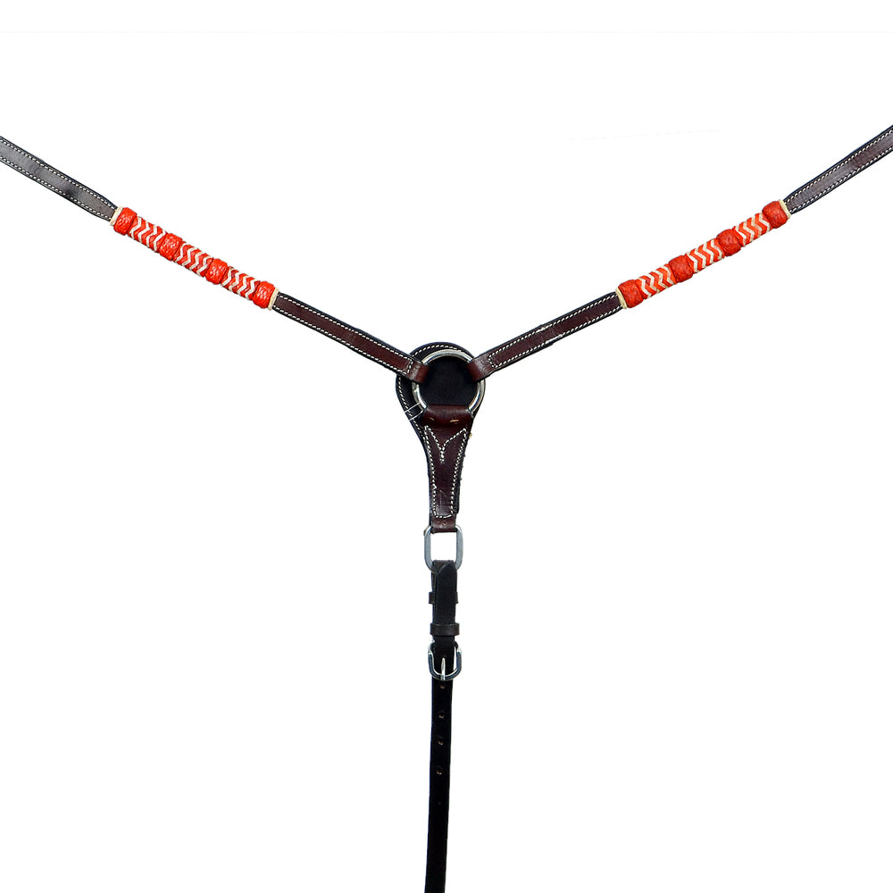 BAR H EQUINE Red Rawhide Horse Western Leather Breast Collar Brown