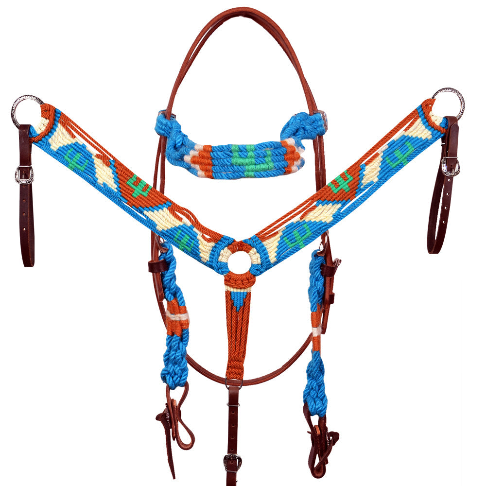 HILASON Cactus Western Wool Breast Collar Headstall Set Tack Set Turquoise & white
