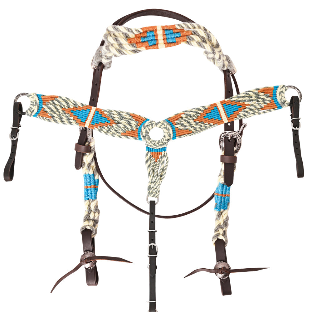 HILASON Sun Western Wool Breast Collar Headstall Set Tack Set Turquoise & Brown