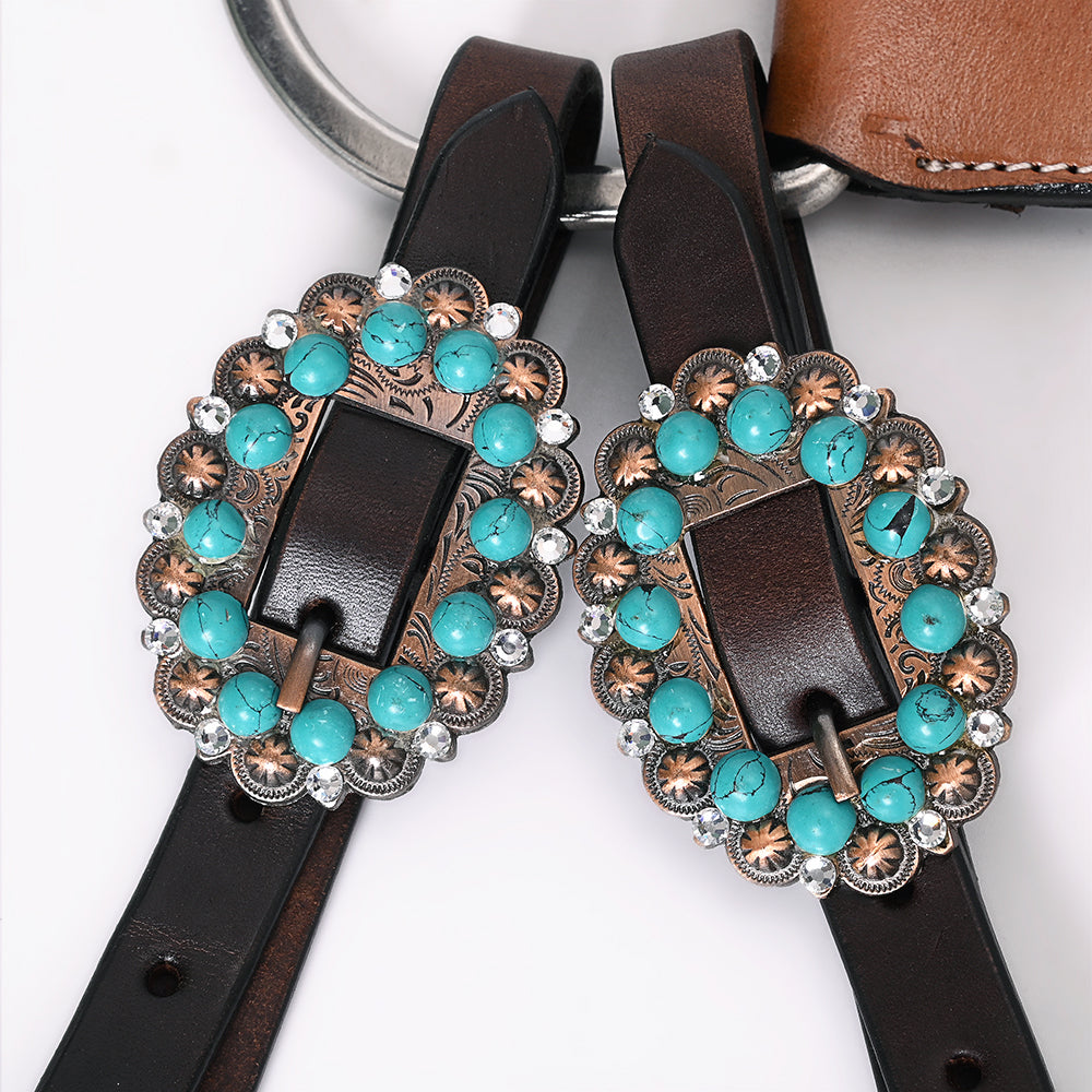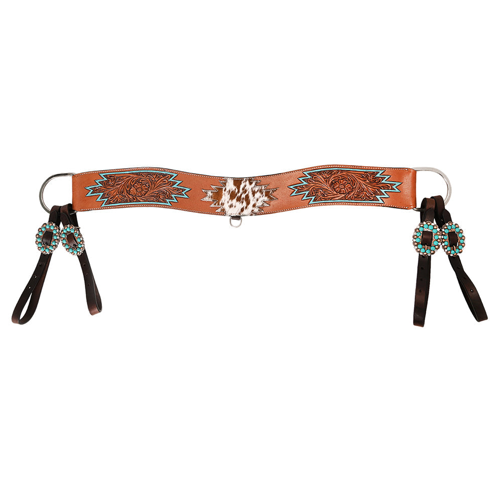 COMFYTACK Leather Horse Tripping Breast Collar Brown Floral Turquoise Inlay