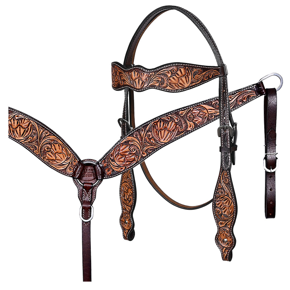 Bar H Equine Genuine Western American Leather Horse Premium Headstall & Breast Collar Set