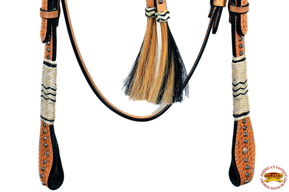 Western Horse Headstall Tack Bridle American Leather Braided Oil Hilason