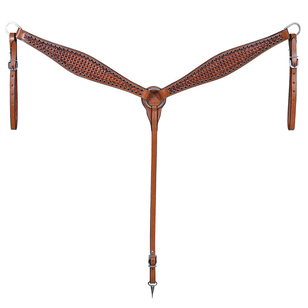 HILASON Western Horse Hand Carved American Leather Breast Collar Headstall