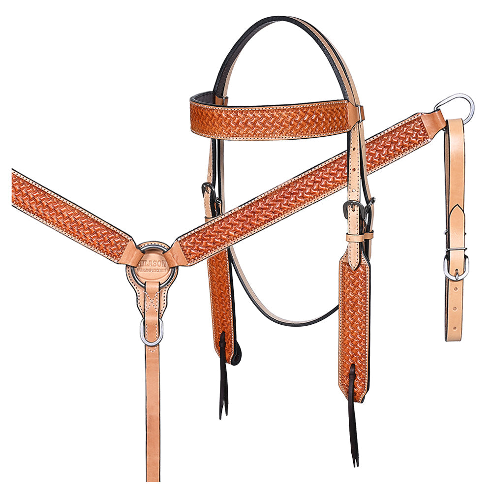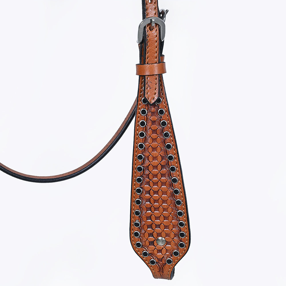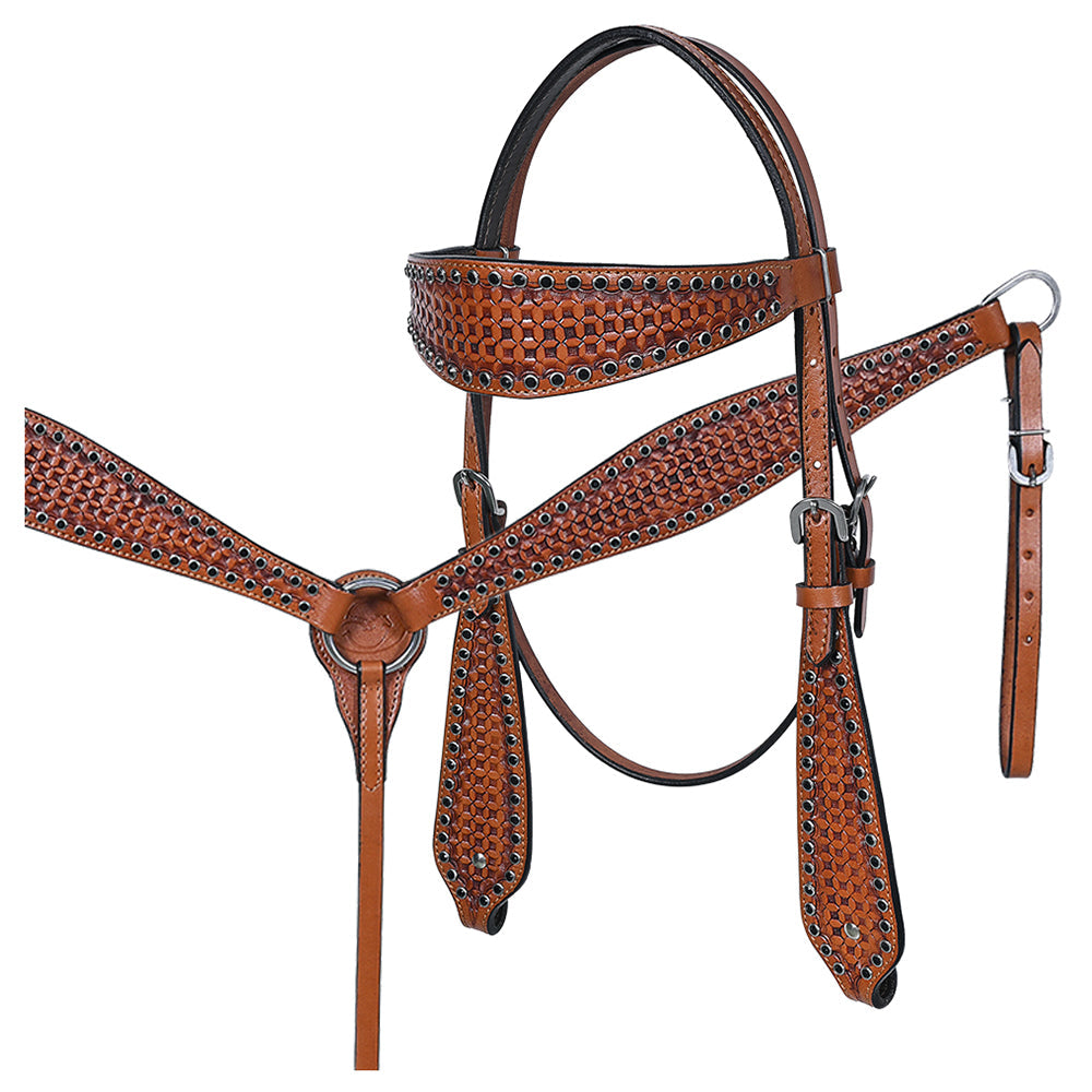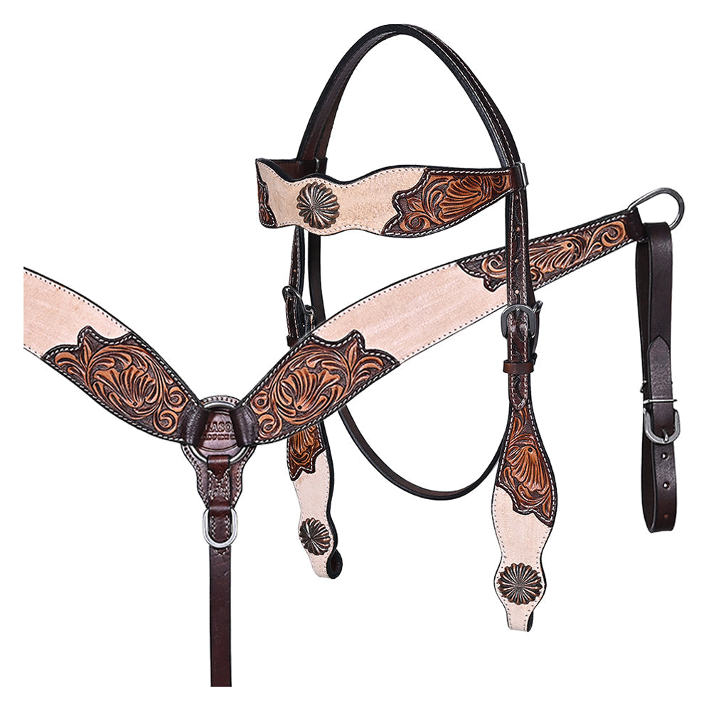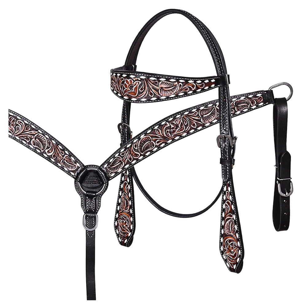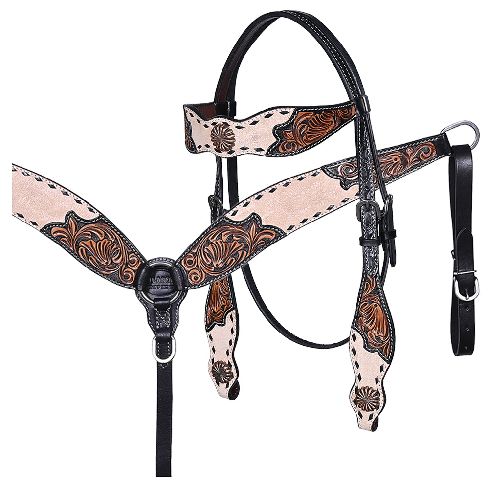 BAR H EQUINE Western Handtooled Leather Horse Headstall & Breast Collar Set