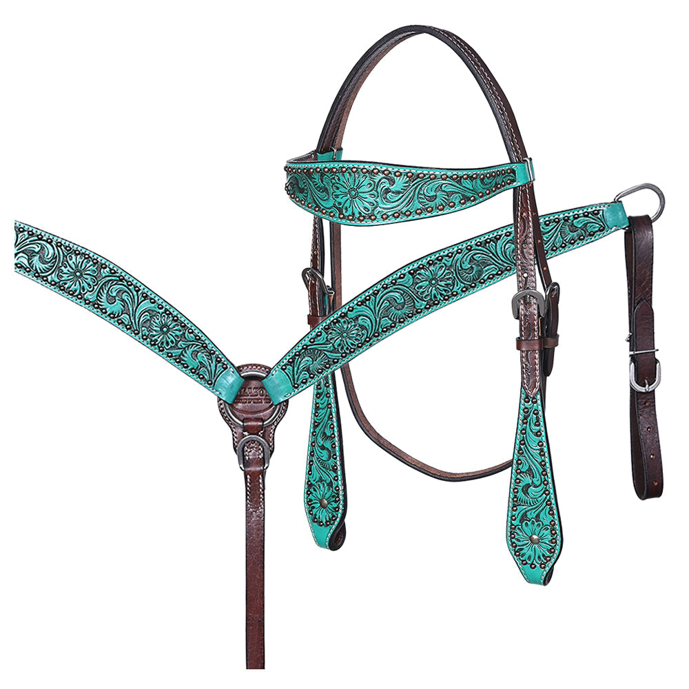 Hilason Horse Floral Hand Painted American Leather Breast Collar Headstall Turquoise
