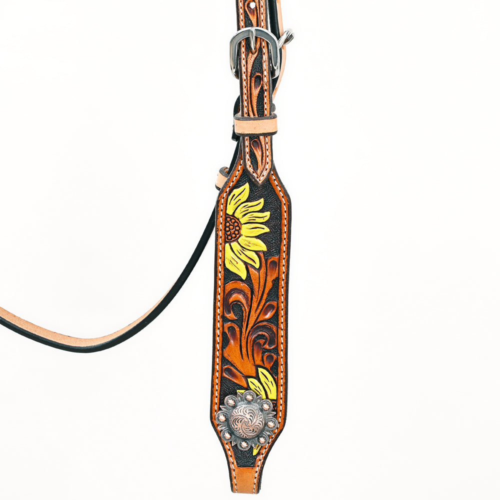 Bar H Equine Bonnie Blossom Sunflower Leather One Ear Headstall