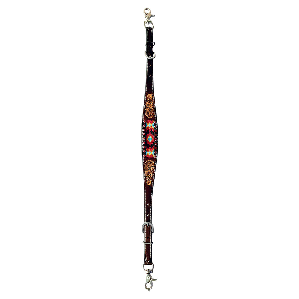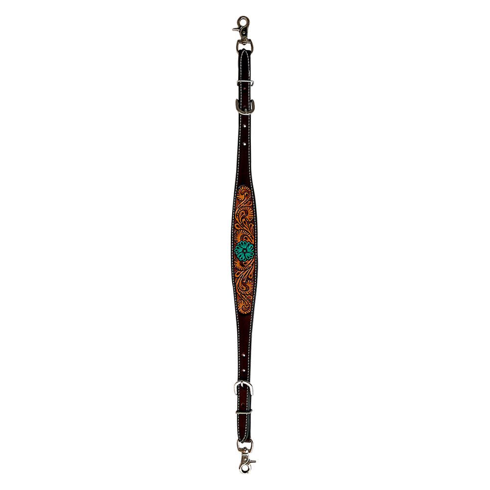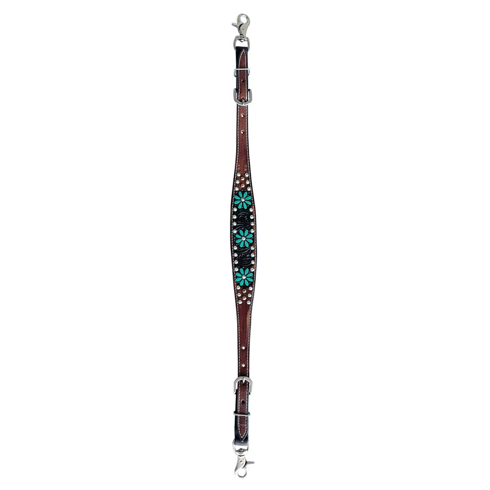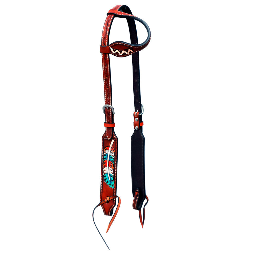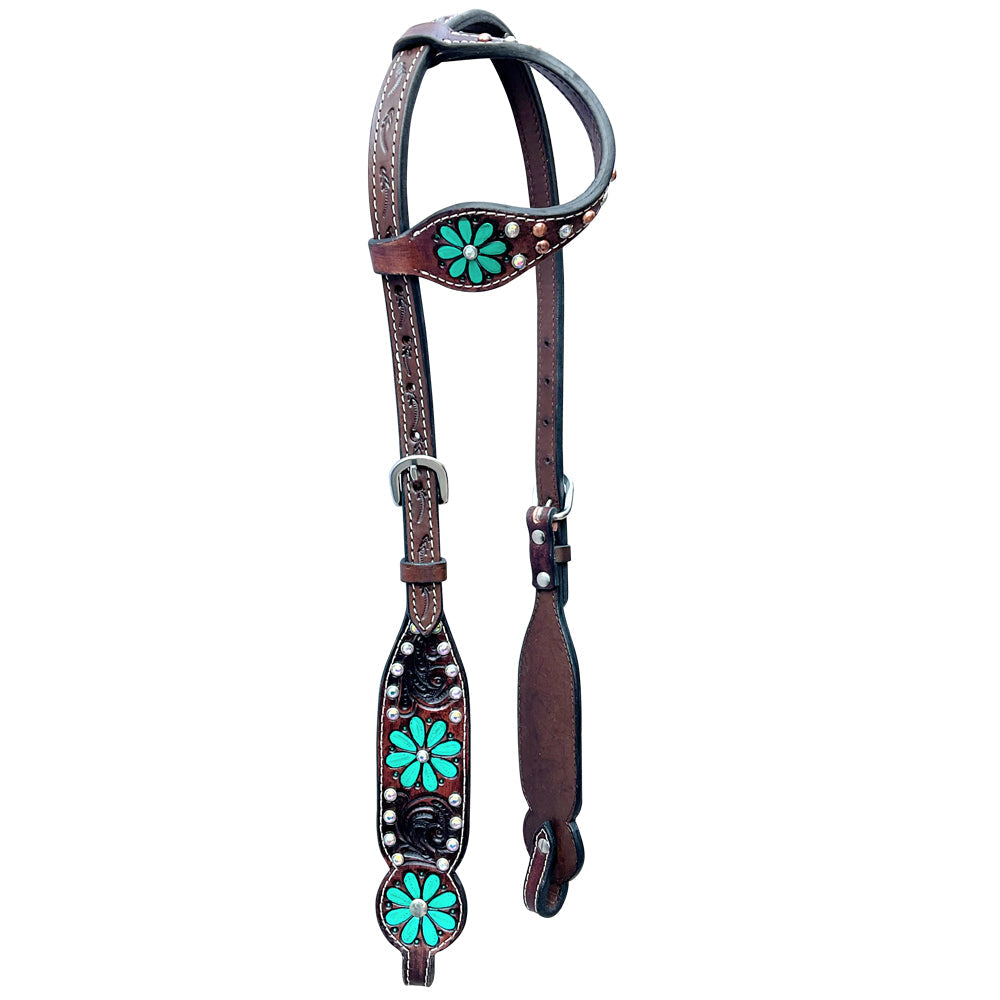 Bar H Equine Horse Leather Turquoise Floral Hand Painted One Ear Headstall Brown