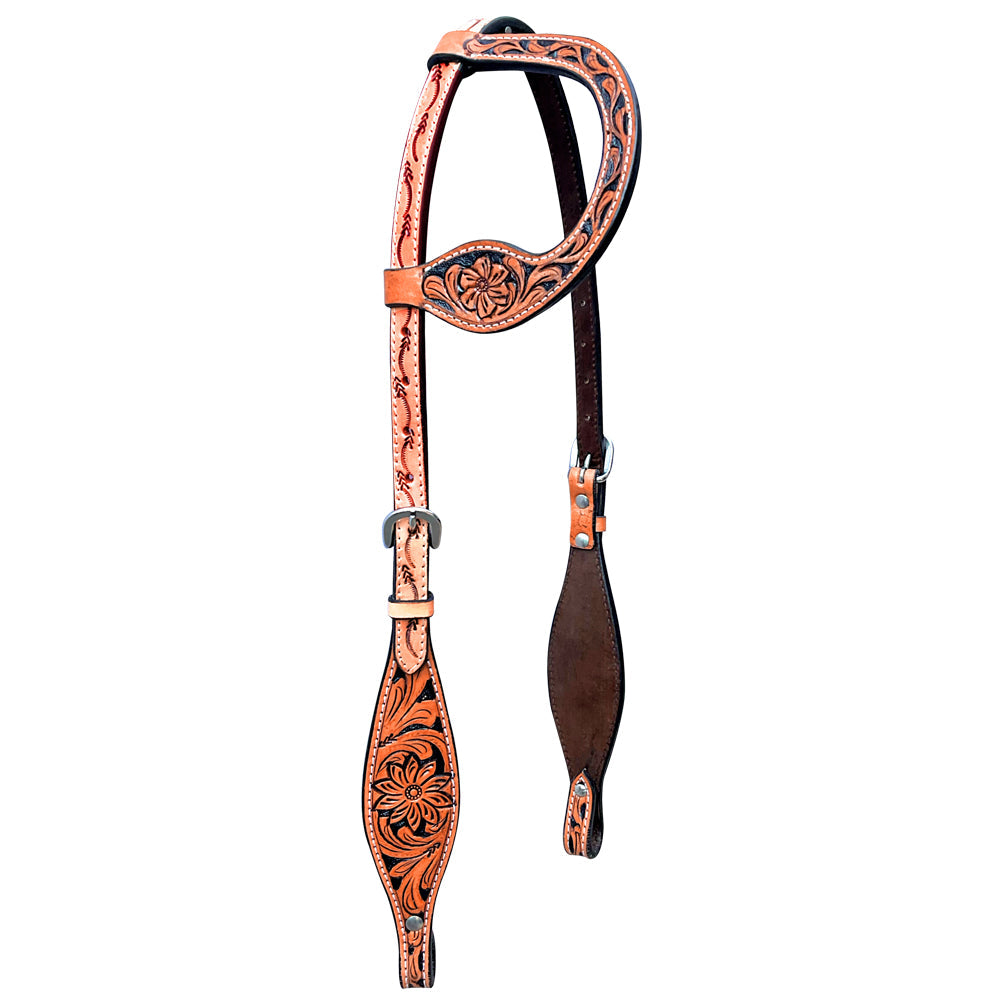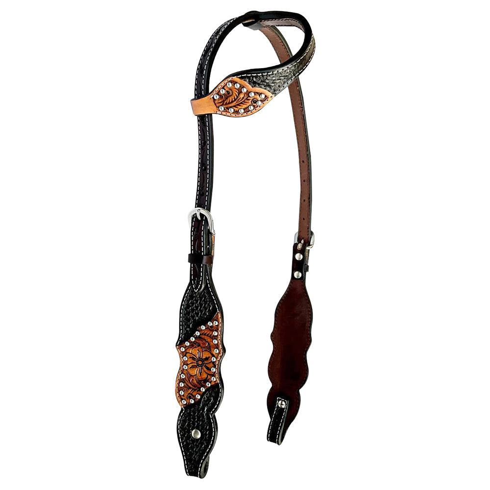 Bar H Equine Premium Hand Tooled Leather Stainless Steel Hardware One Ear Headstall Brown