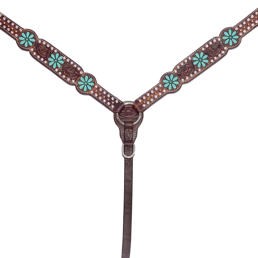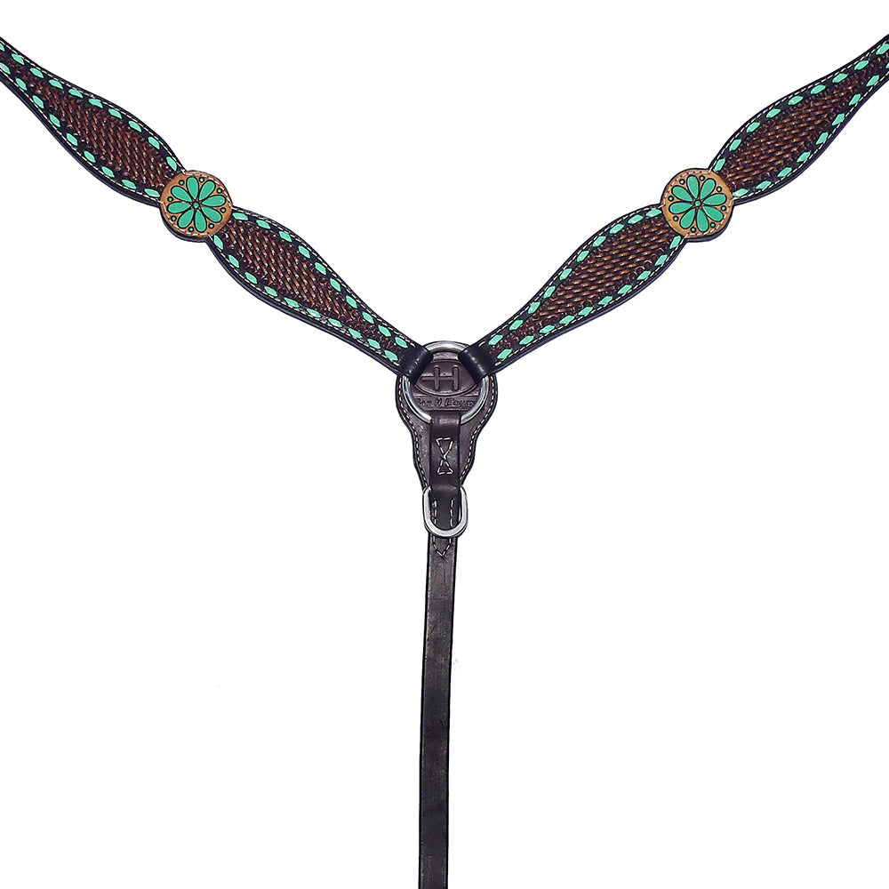 Bar H Equine Genuine Western American Leather Horse Premium Headstall & Breast Collar Set