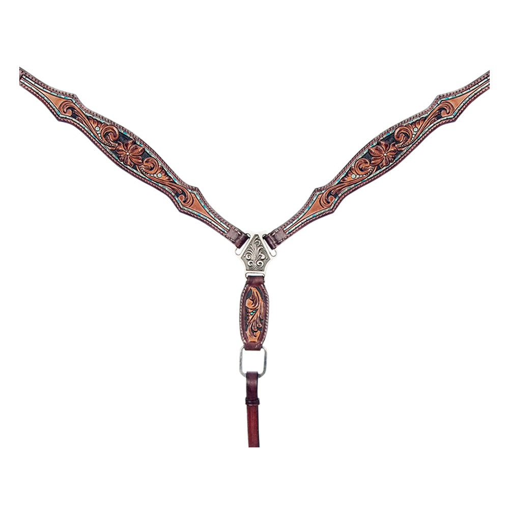 Bar H Equine Horse Genuine Leather Hand Tooled Breast Collar ,Headstall Brown