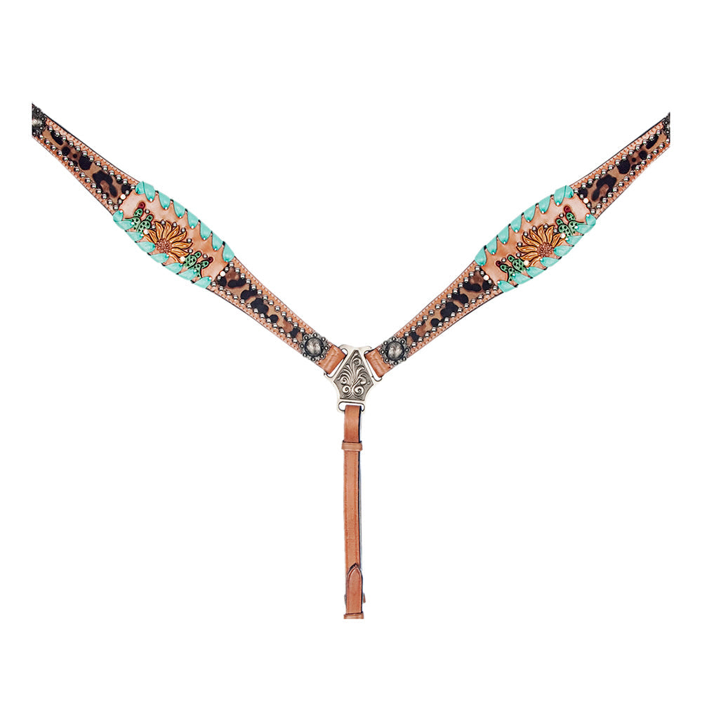 HILASON Western Horse Leather Headstall & Breast Collar Set White Leopard