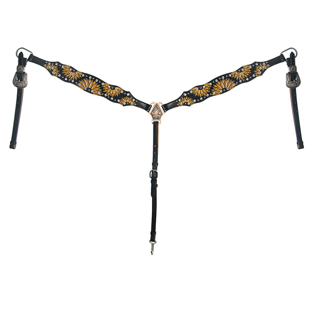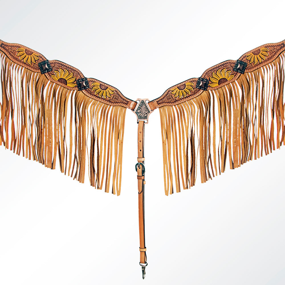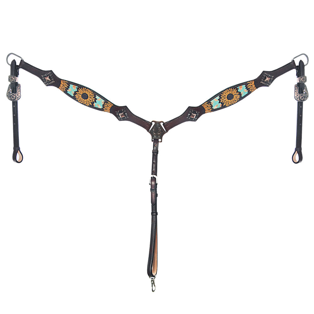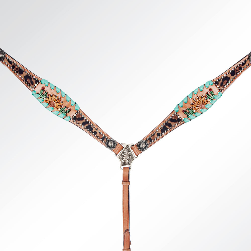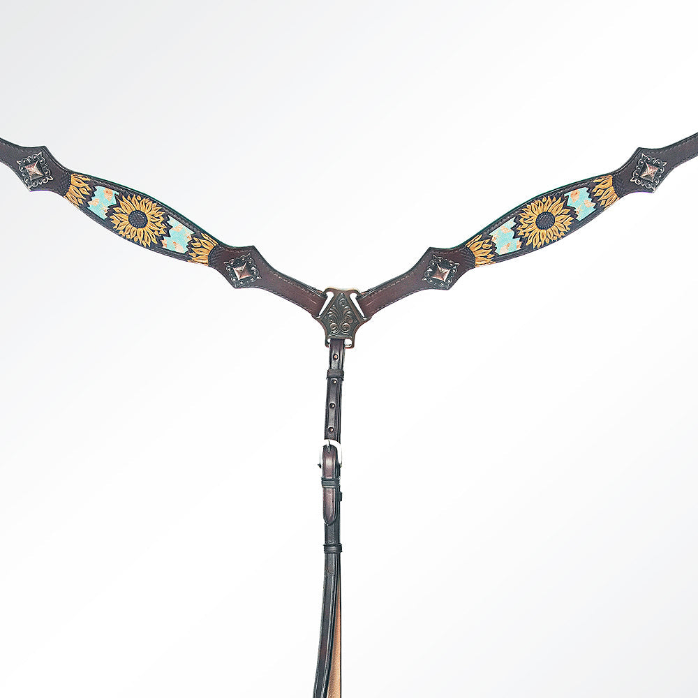 Bar H Equine Genuine Western American Leather Horse Premium Headstall & Breast Collar Set