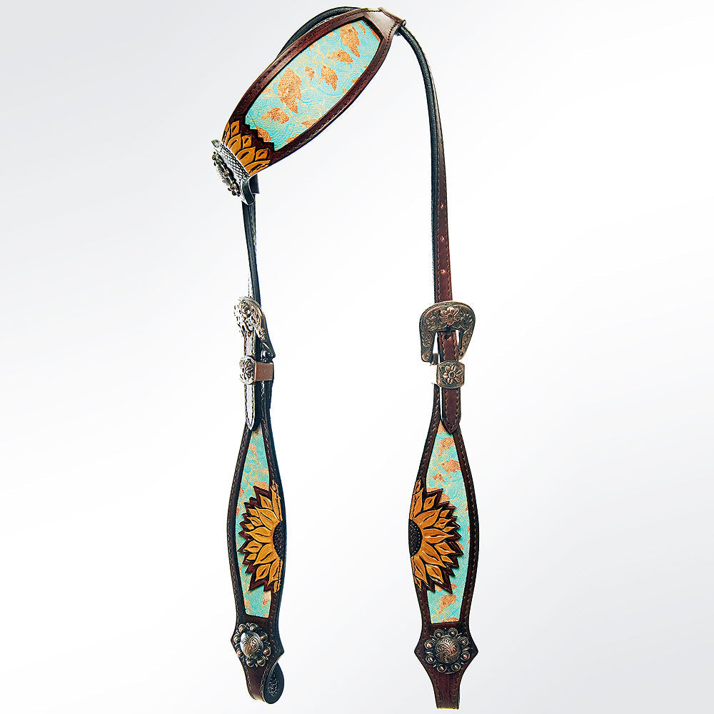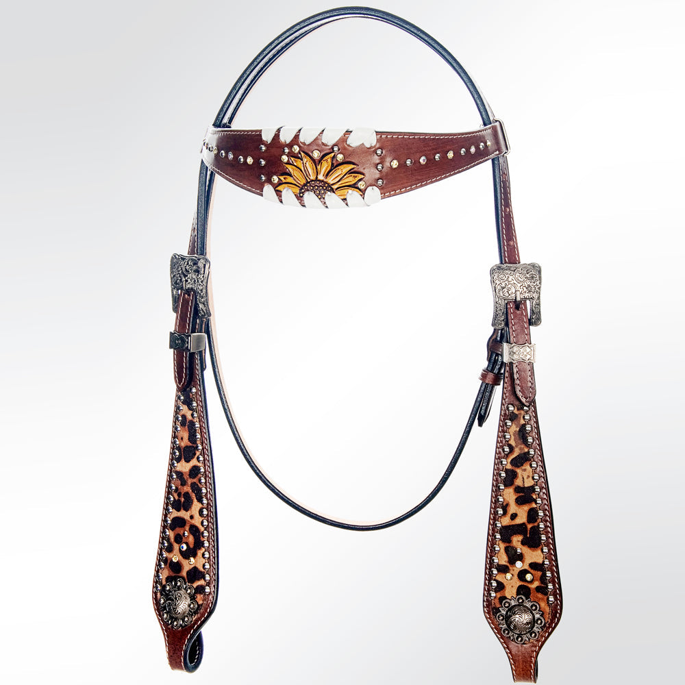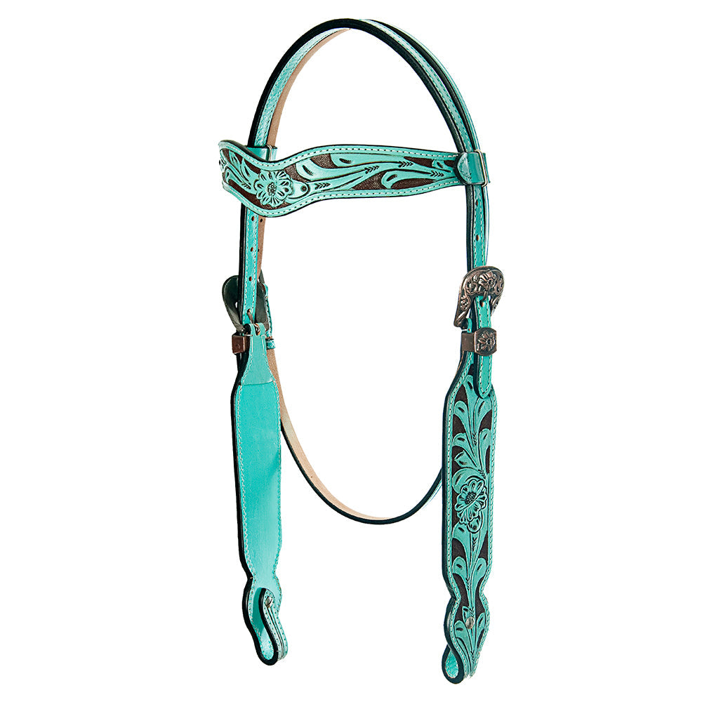 American Darling Western Horse Leaf Genuine Leather Headstall Tack Set