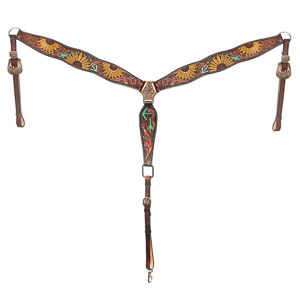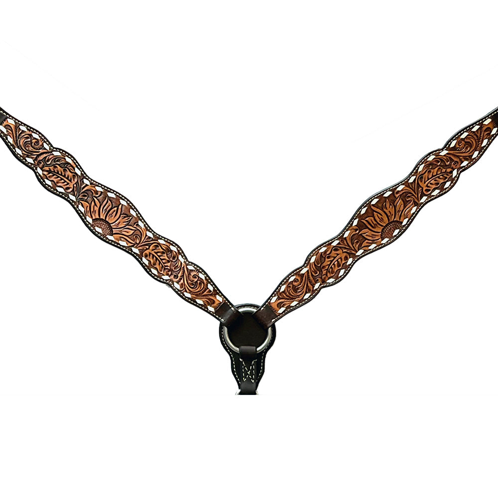 American Darling Western Horse Floral Headstall Breast Collar Genuine Leather Brown