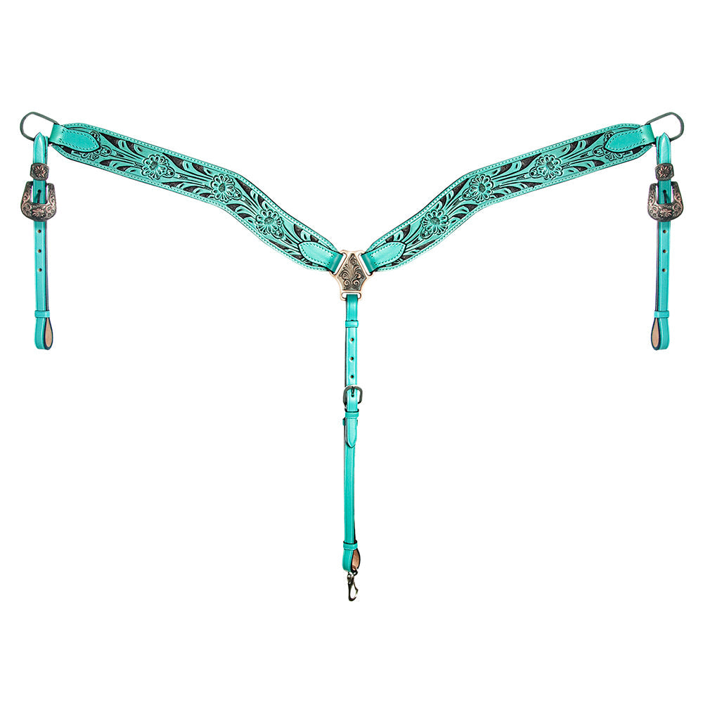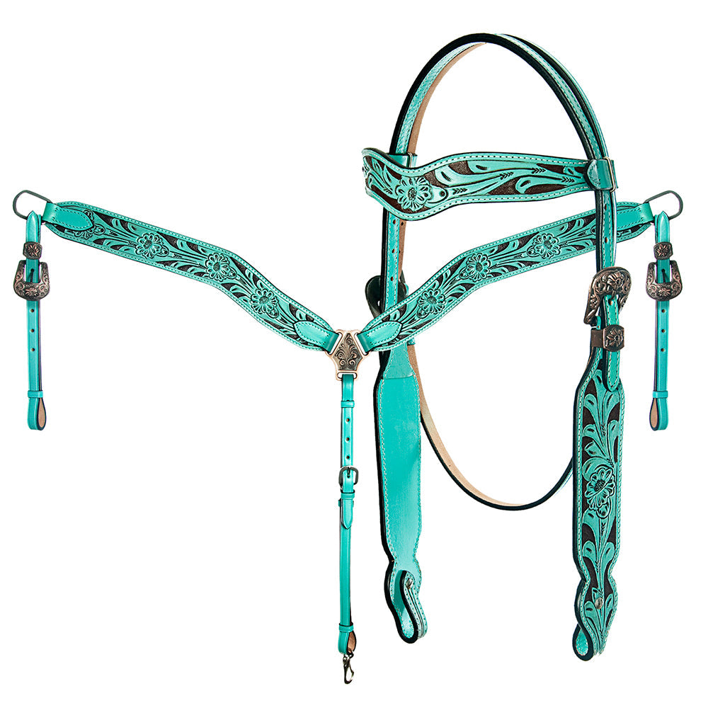 BAR H EQUINE Western Handtooled Leather Horse Headstall & Breast Collar Set