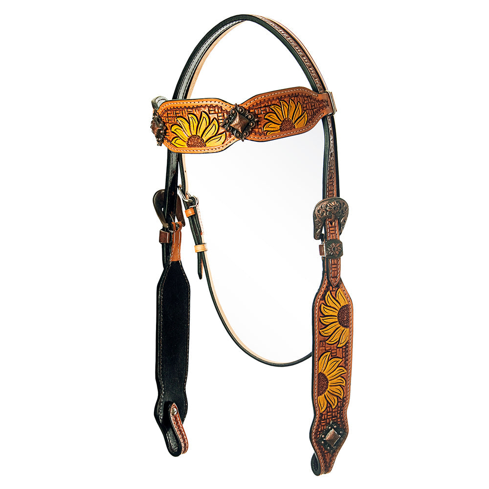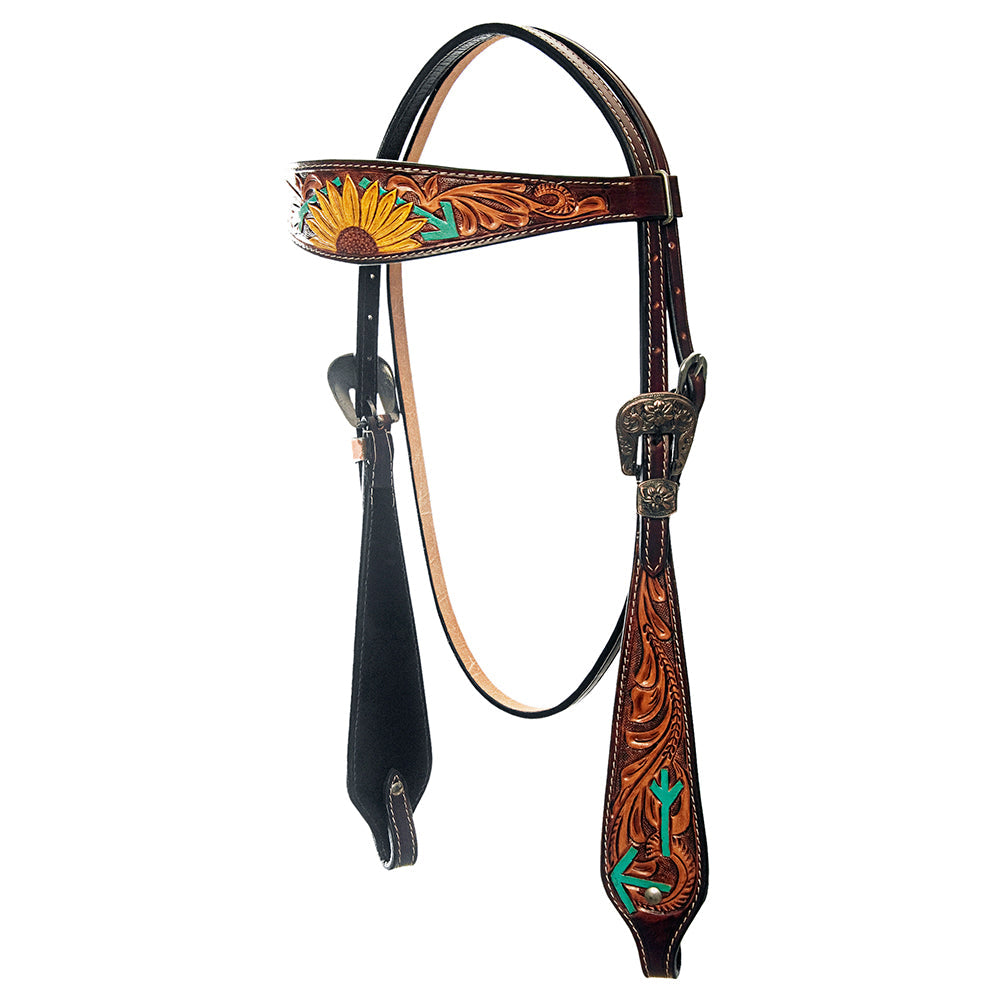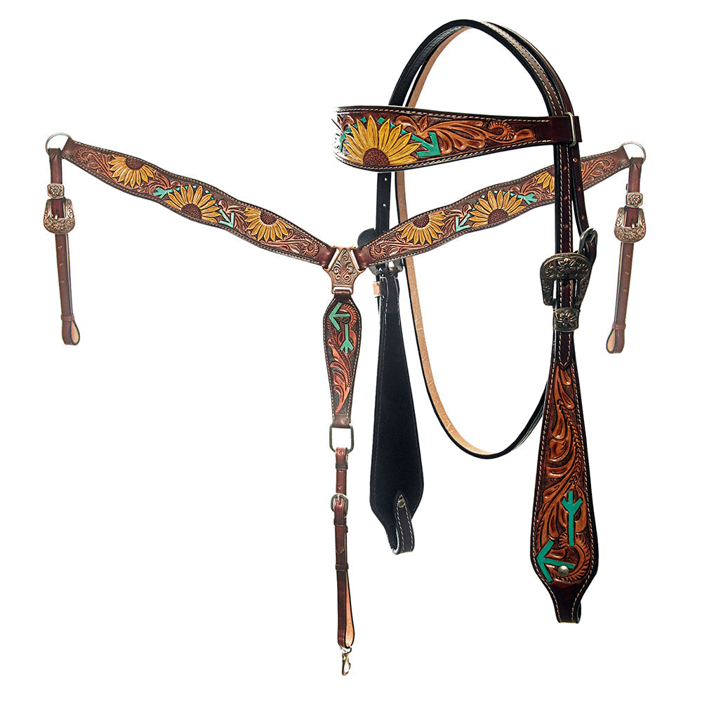 American Darling Western Horse Floral Genuine Leather Headstall Tack Set
