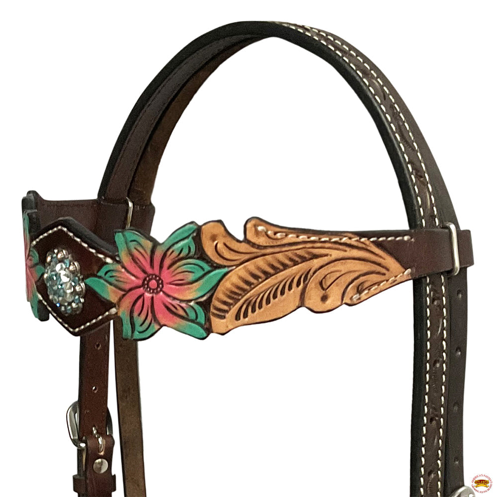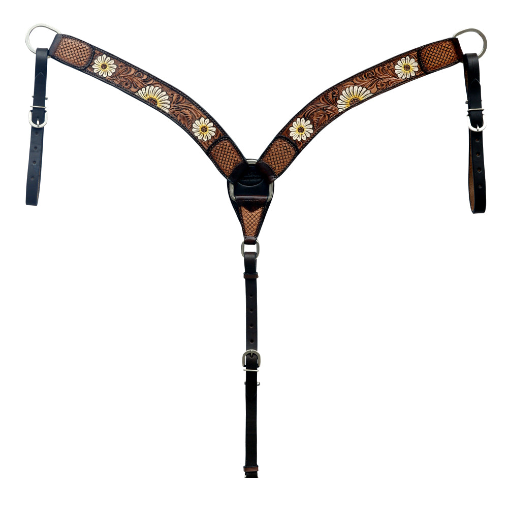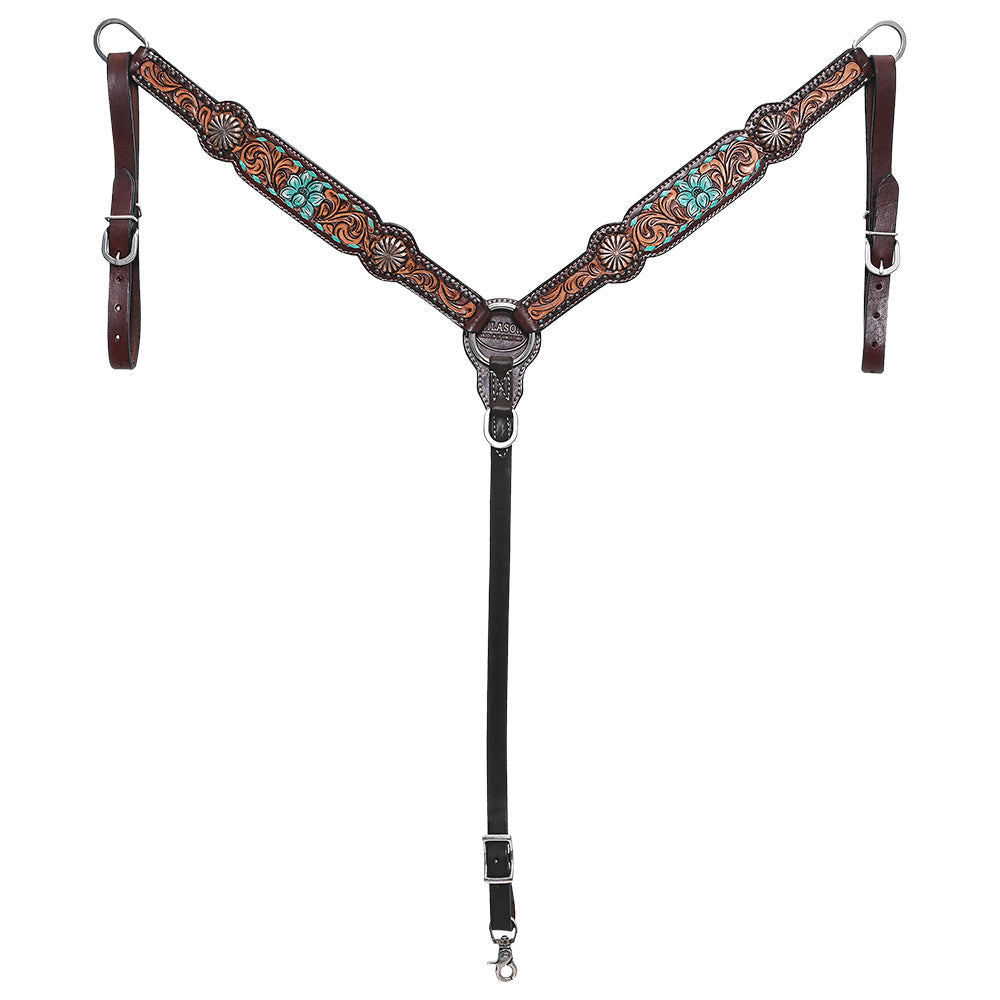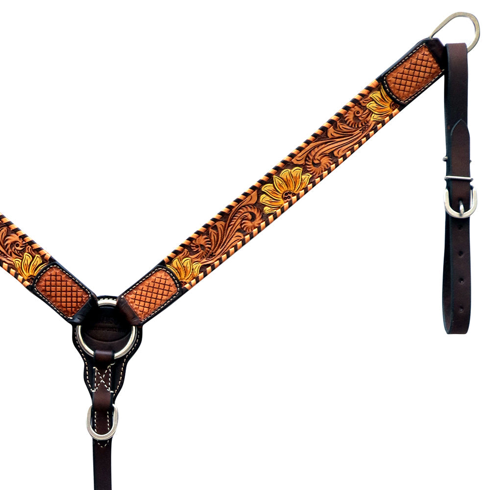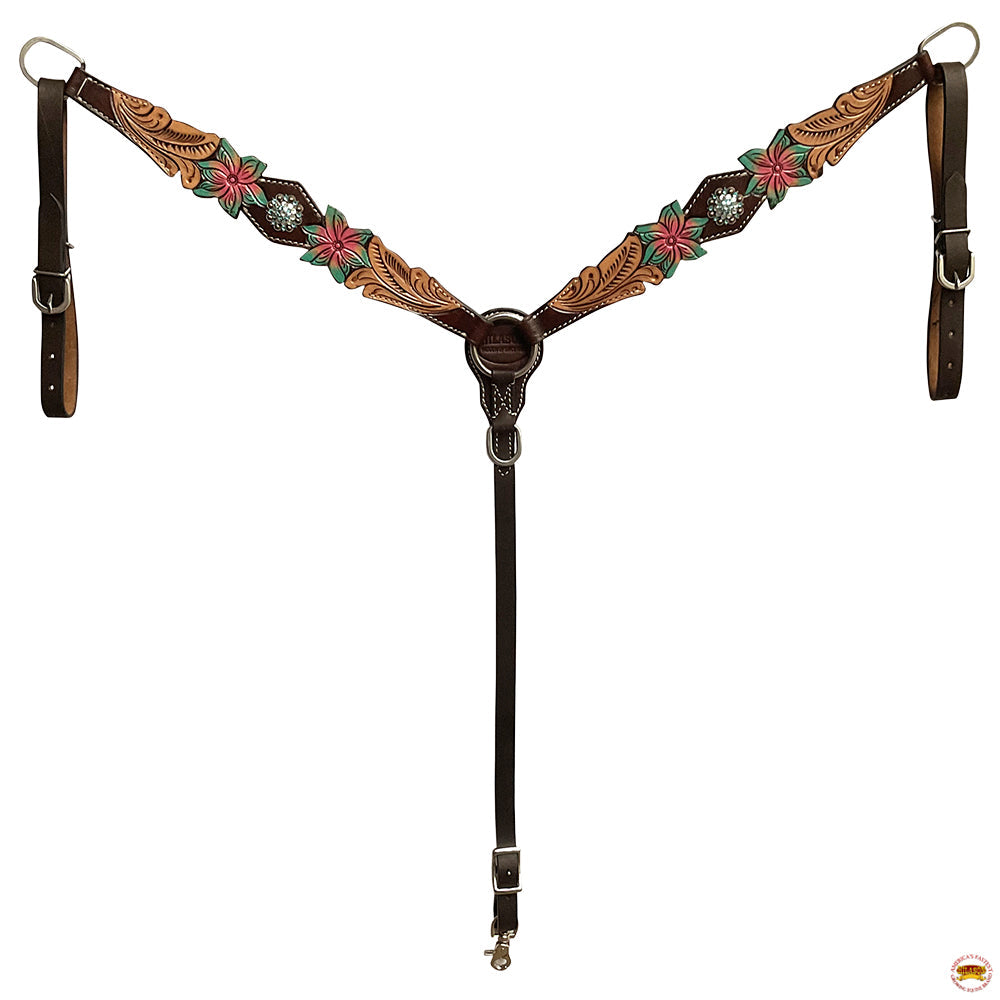 Hilason Horse Floral Hand Painted American Leather Breast Collar Headstall Brown