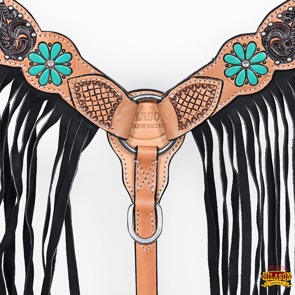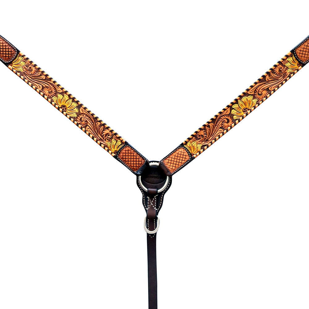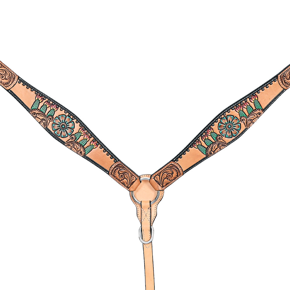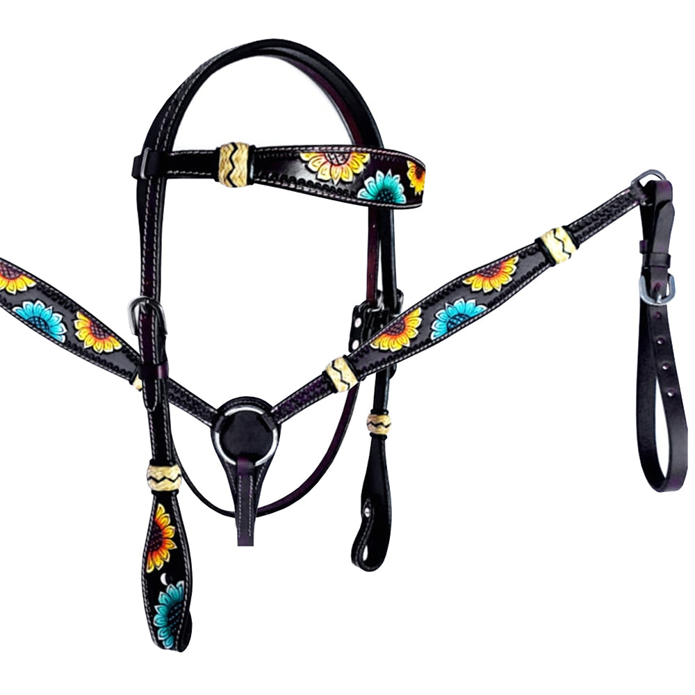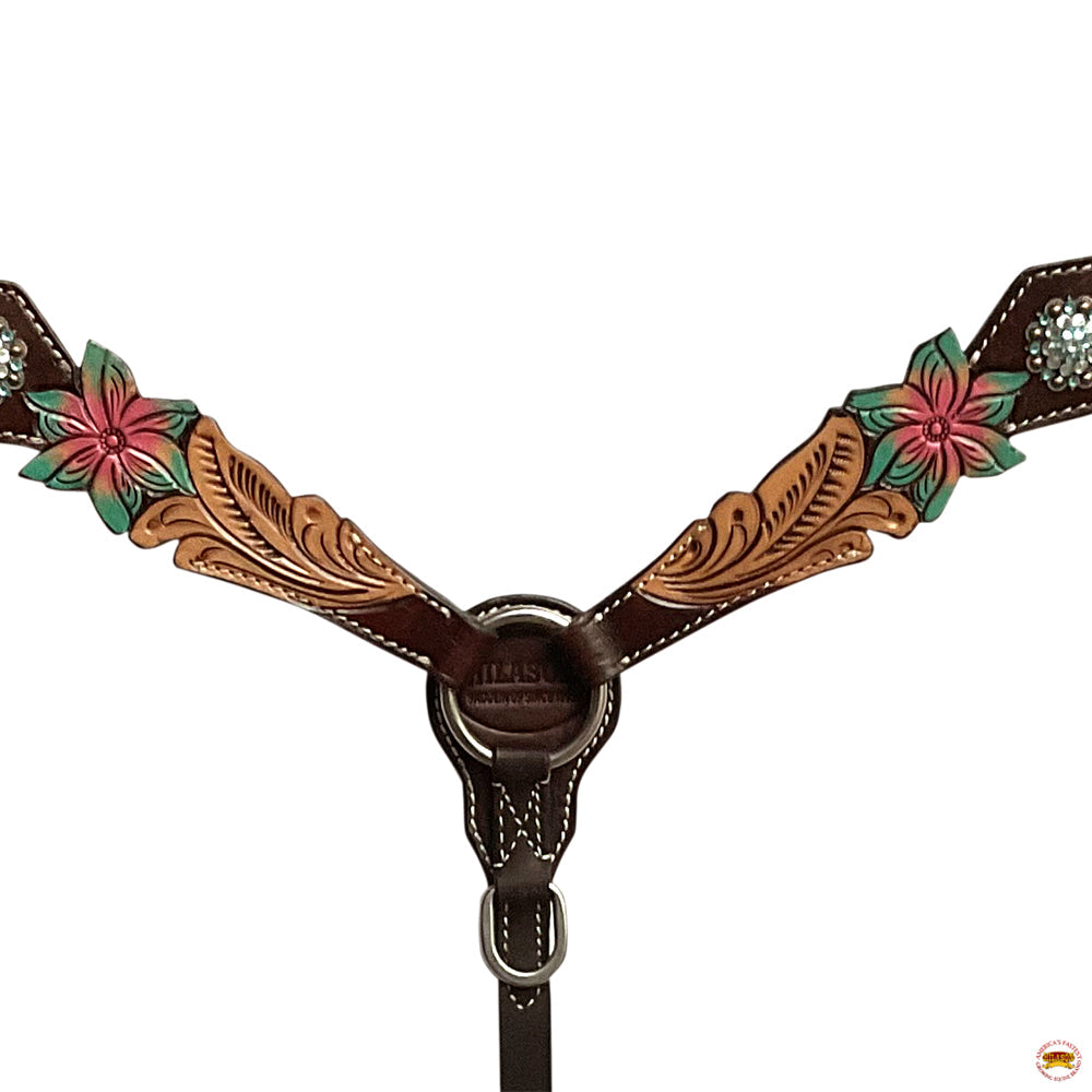 Hilason Horse Floral Hand Painted American Leather Breast Collar Headstall Painted