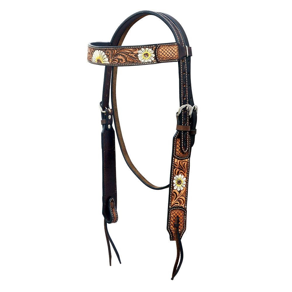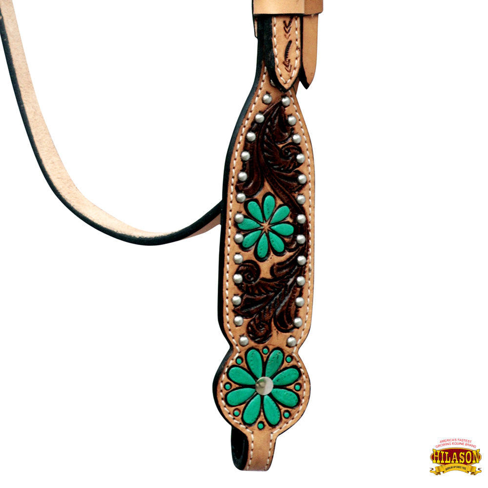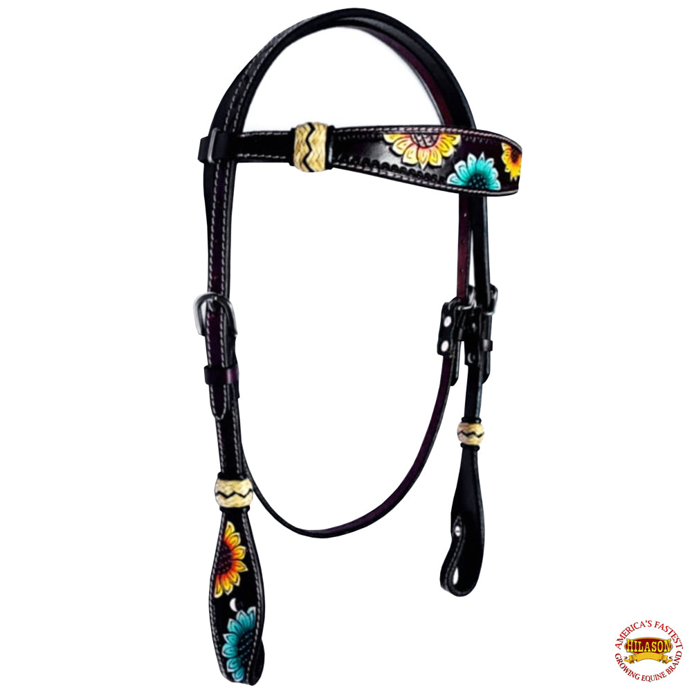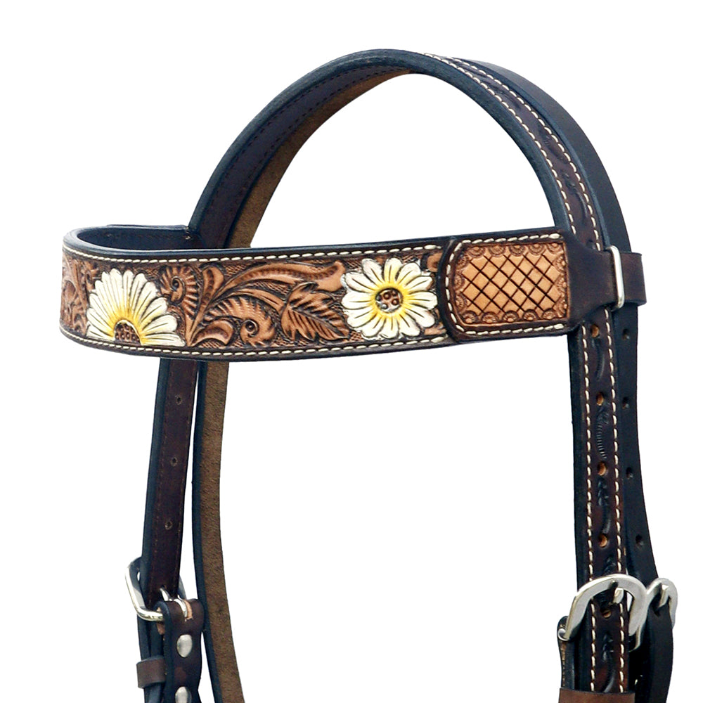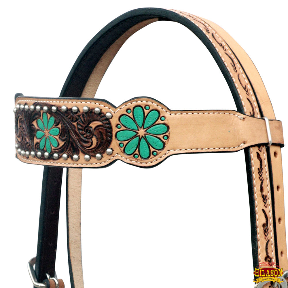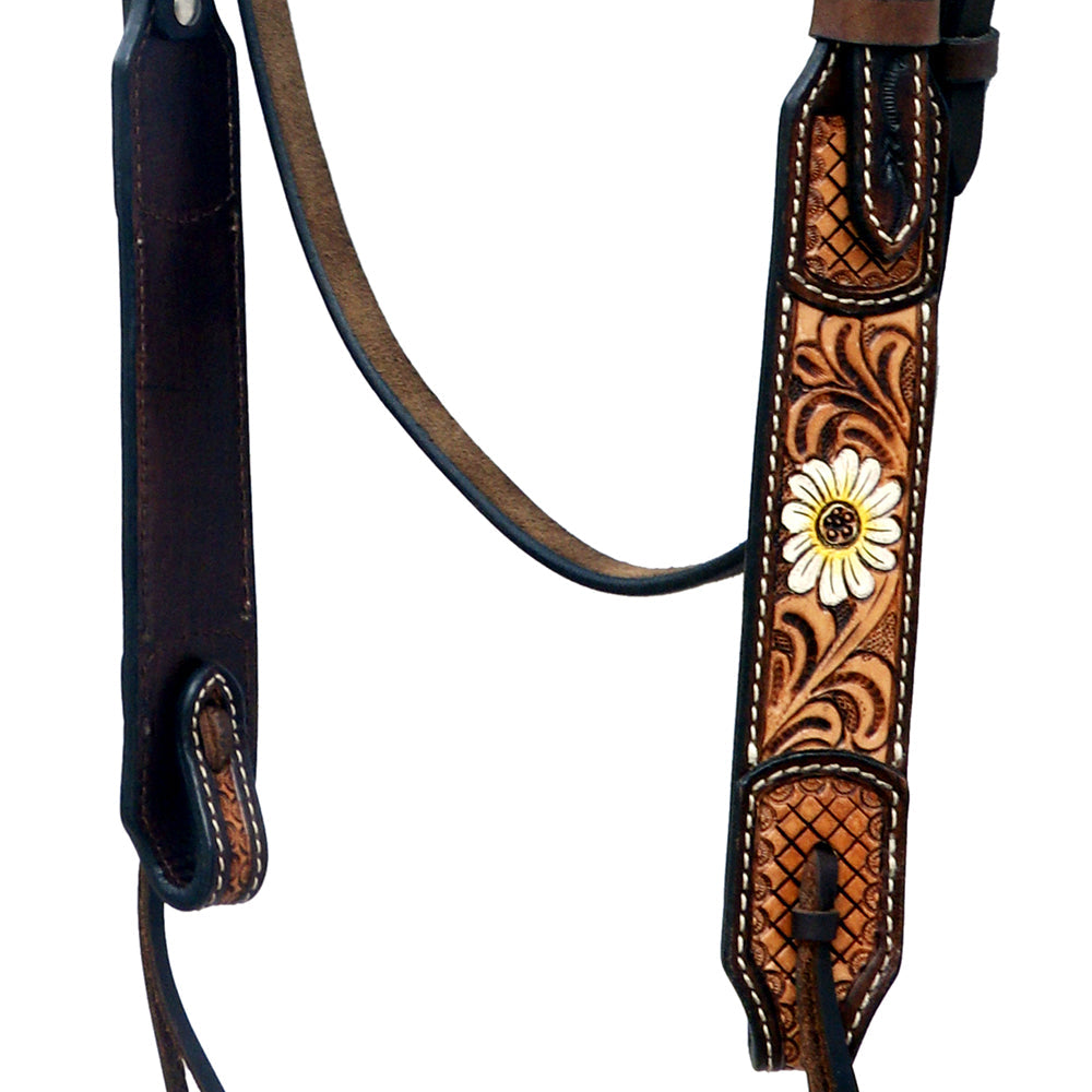 HILASON Western Horse Headstall American Leather Tan Sun flower