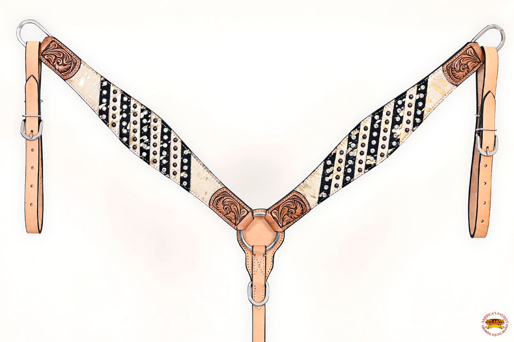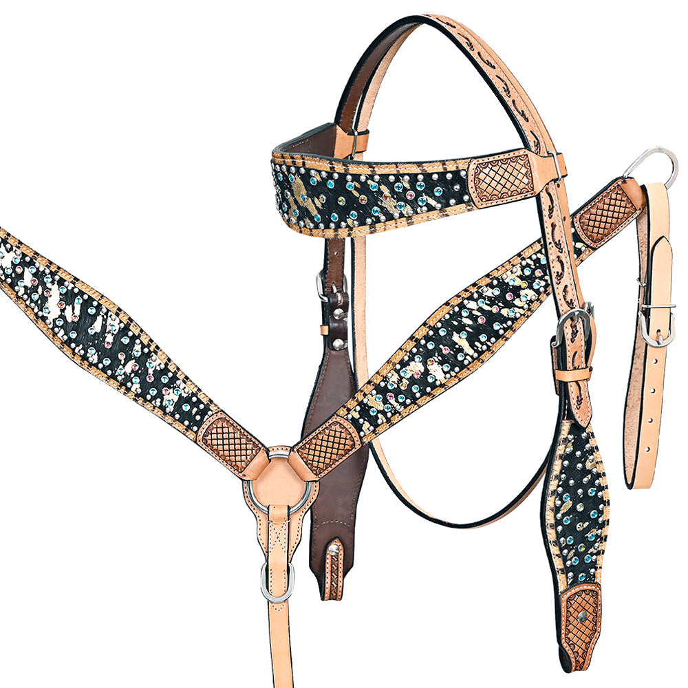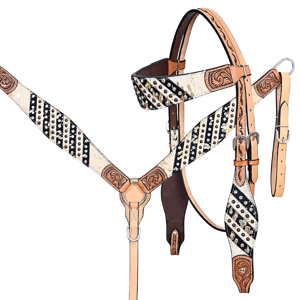 HILASON Western Horse Headstall Breast Collar Hairon Leather Tan