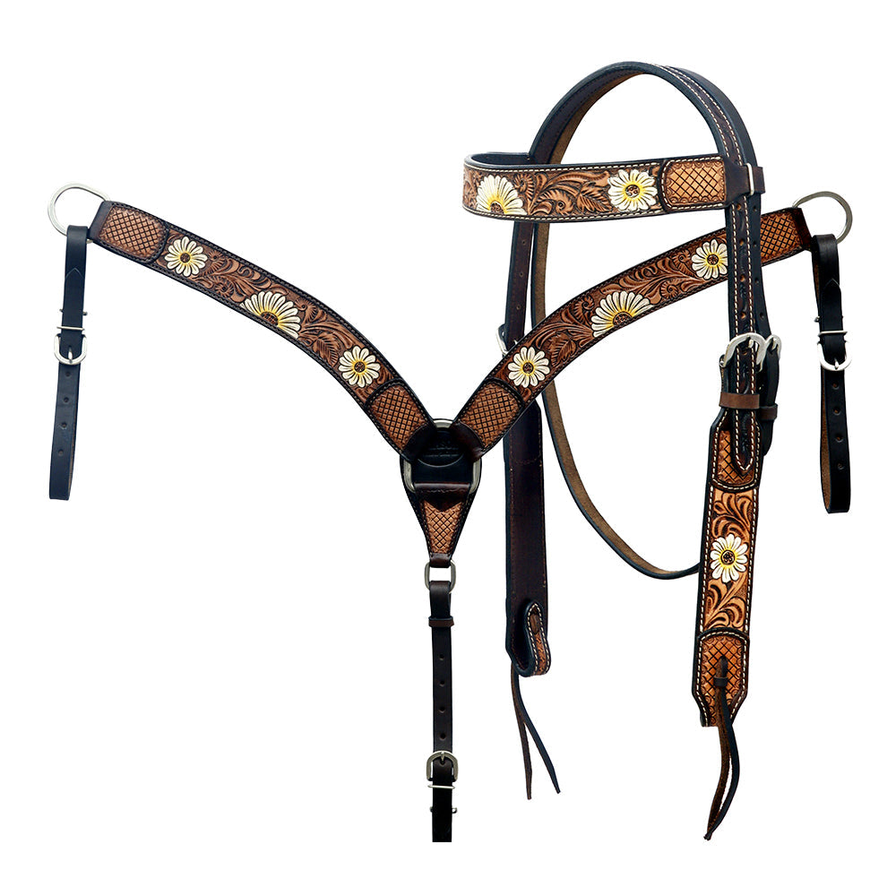HILASON Western Horse Floral Headstall Breast Collar One Headstall American Leather Tack Set